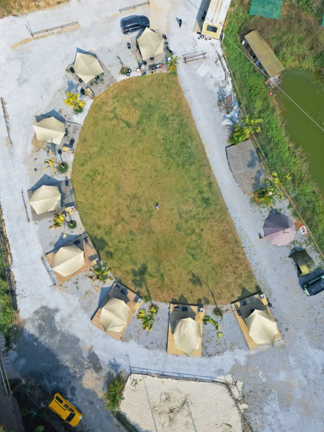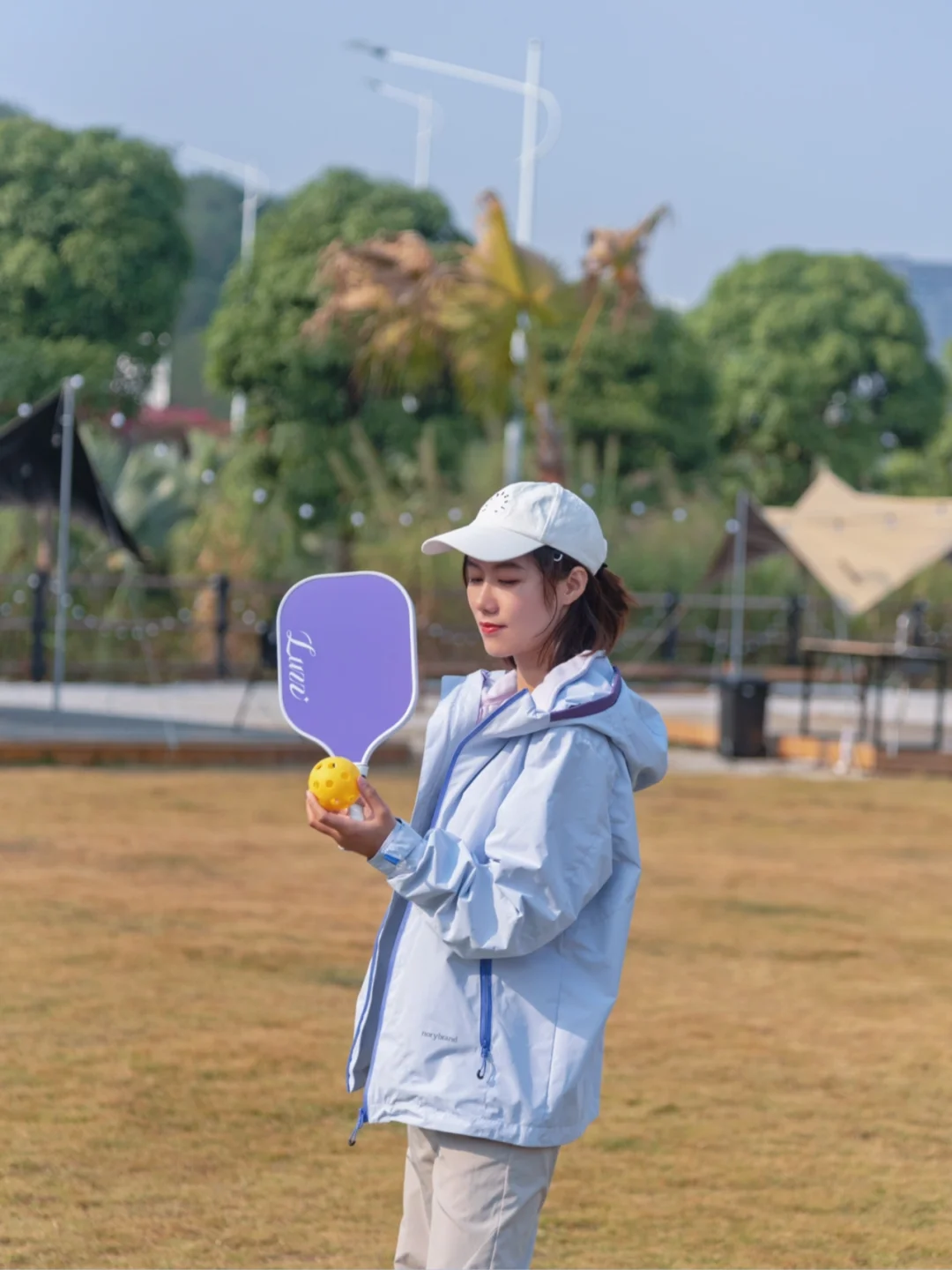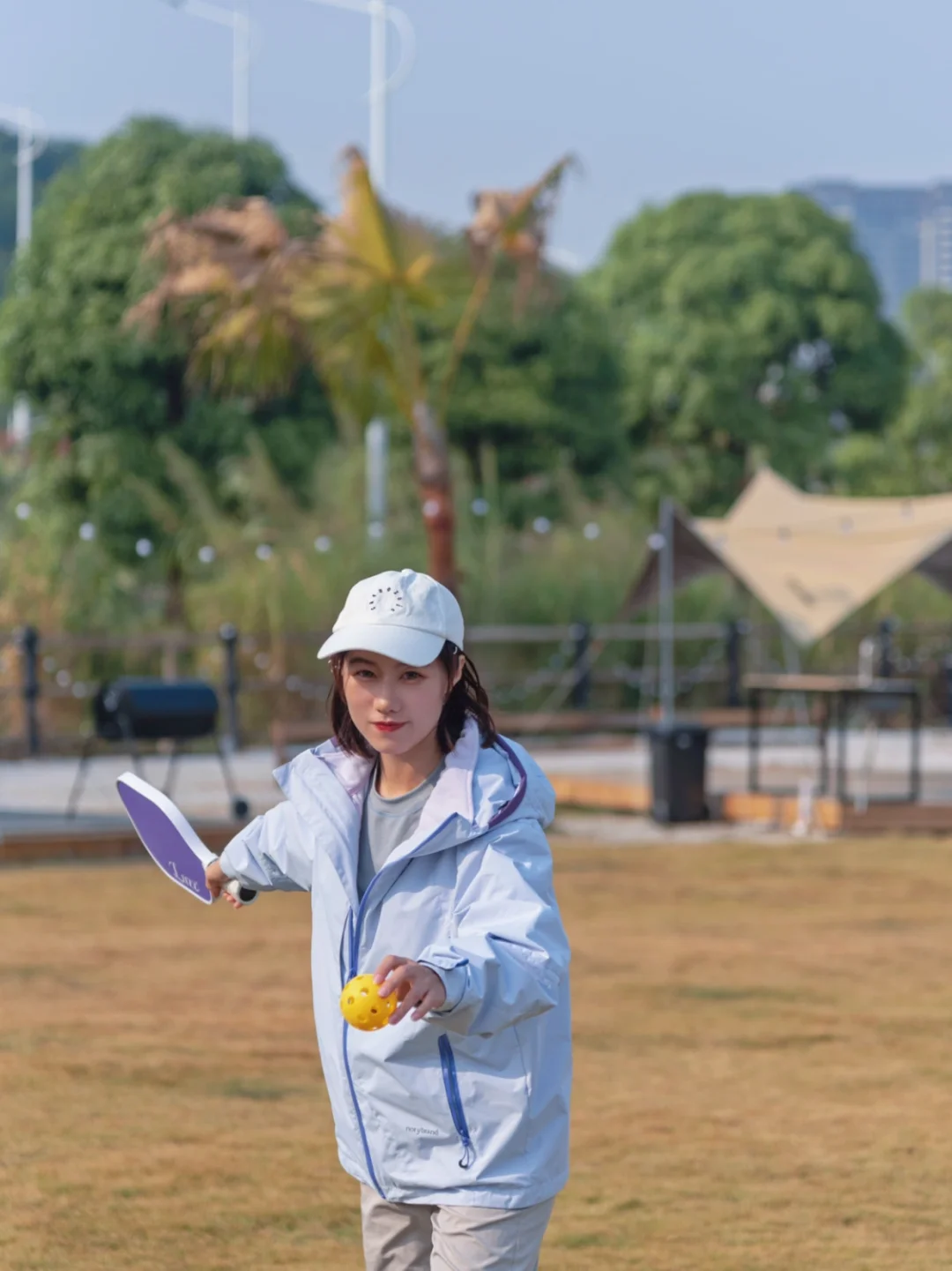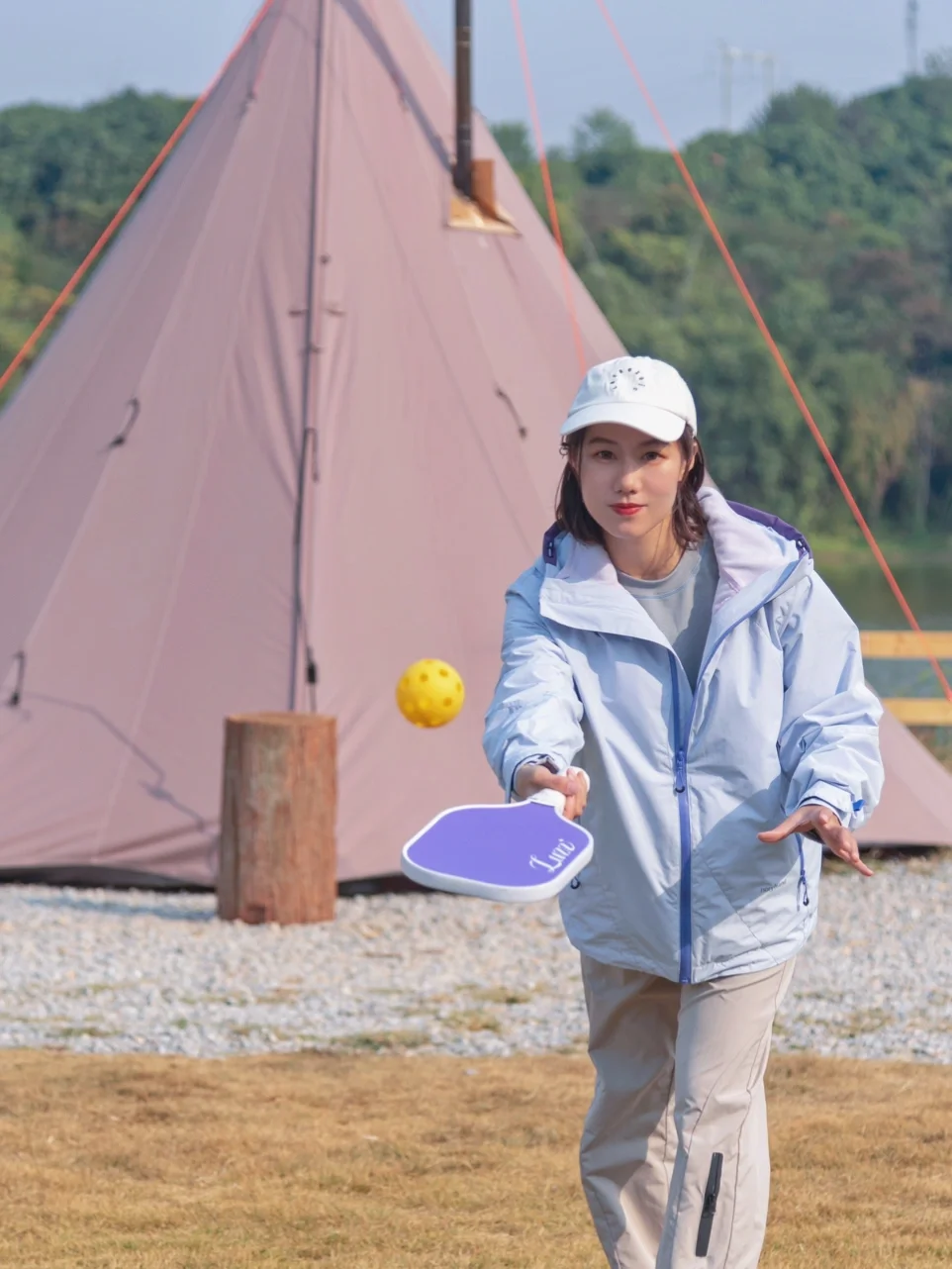 1️⃣蕞喜欢入口处的平台大草坪,在这里解锁了匹克球飞球截击新玩法,醉近痴迷匹克球无法自拔,在家里和露营都不忘带上练习,许愿能早日找到组织更上一个level
