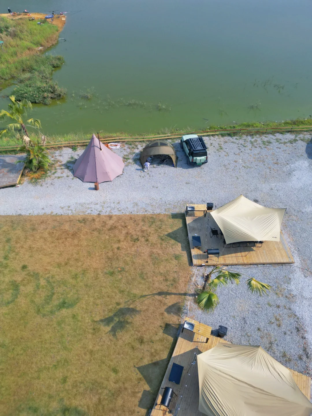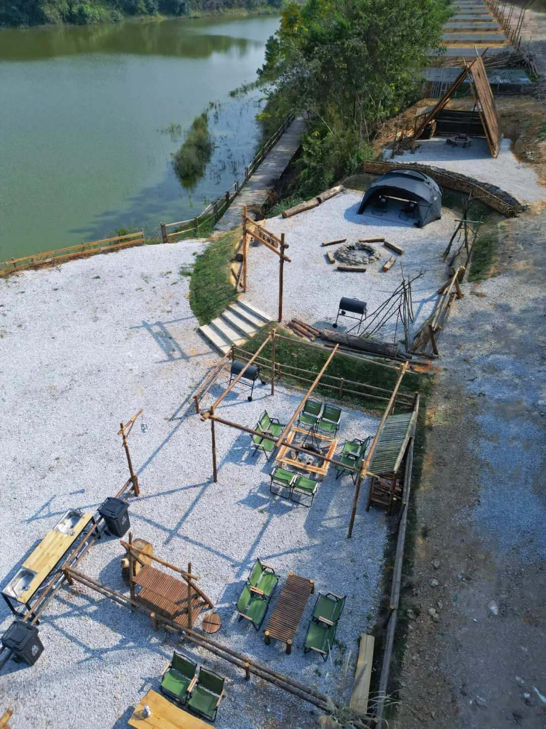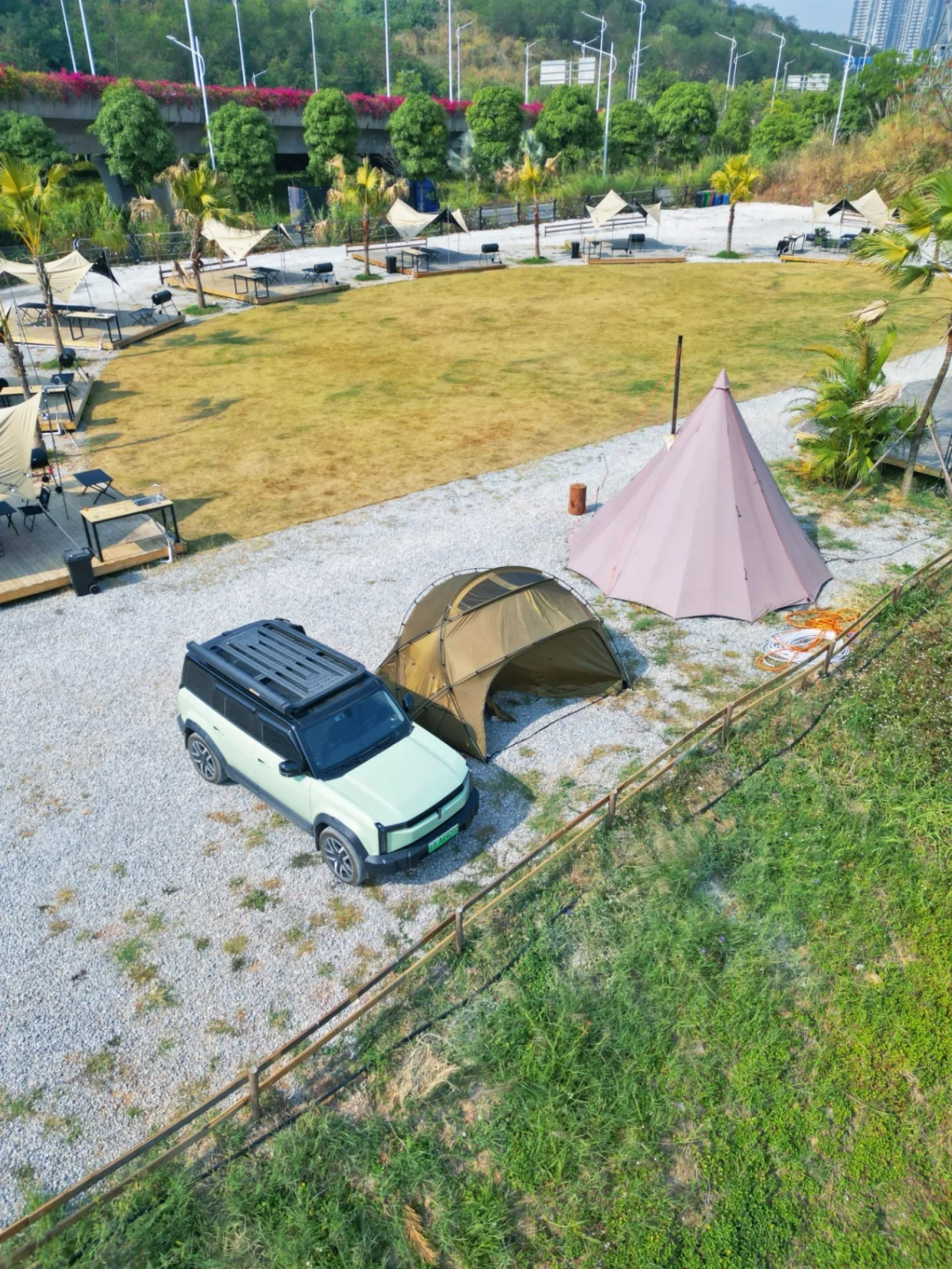 南宁青秀区东站旁开了家氛围感很不错的露营地,大片湖景,设施齐全,🈶平台草地野营BC体验,🉑钓鱼烤🔥围,下班后的快乐在这里都能找到