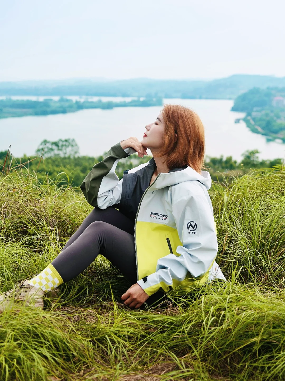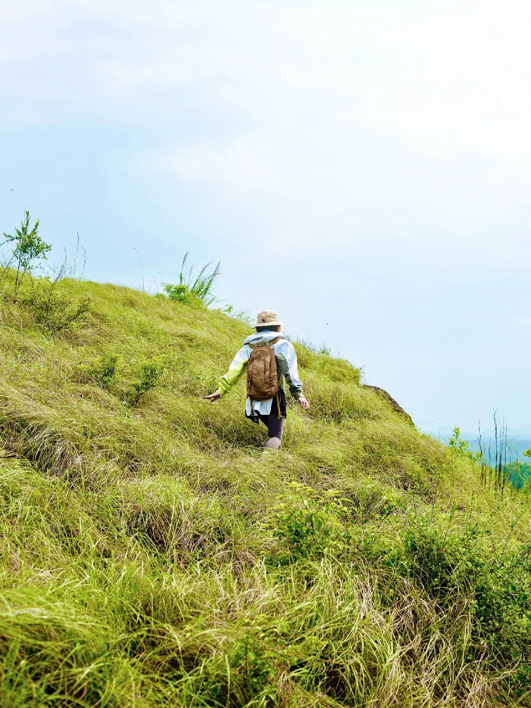 2️⃣ 鸡笼山的草纤长有层次,软软的很适合躺平,躺着看看三江口风景,舒服