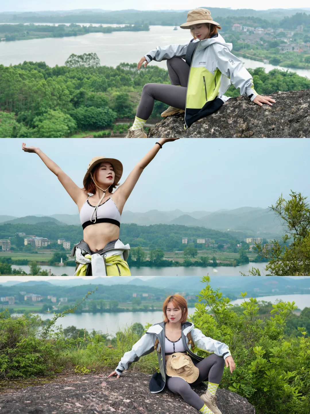 1️⃣鸡龙山山顶🉑俯瞰三江口,远眺宋村古村村落,山顶有几处怪石很适合拍照。必经路线口有一块巨石,巨石旁边有小路可以上山