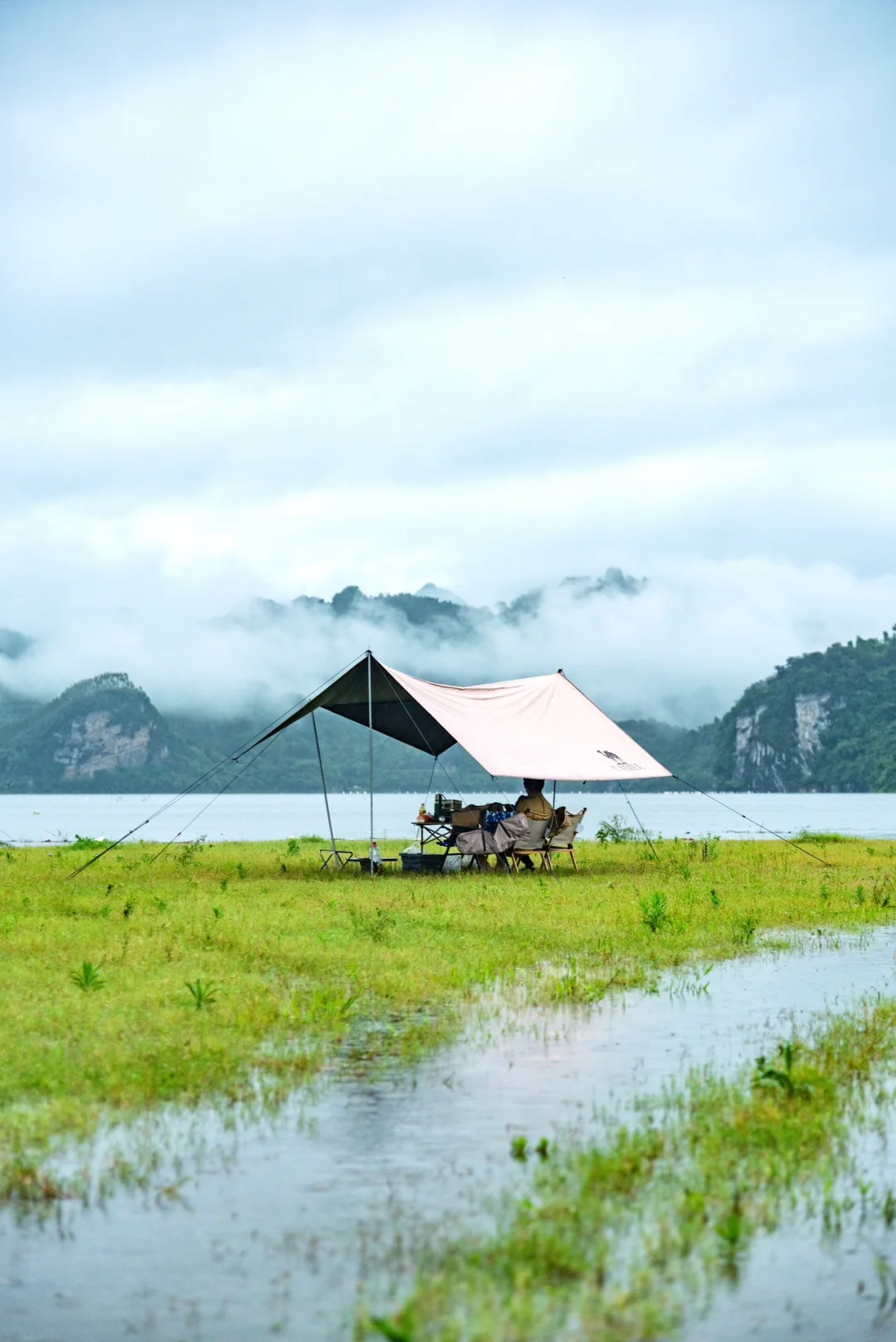 1️⃣夏日雨天露营虽然爽,但是请一定提前做好功课并了解户外知识。比如:雨天水边露营时刻关注水位线并做好标记。一但标记物被淹没,不要贪恋立刻撤离