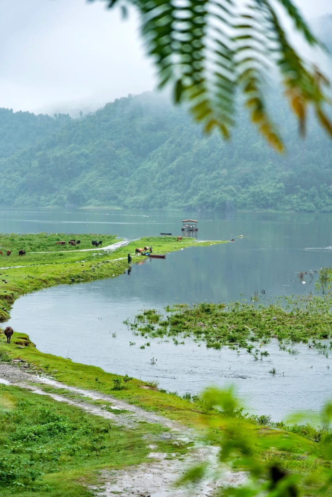 去过很多次的东敢水库,见过丰水期的汪洋感,见过枯水期的草原感。这样仙气飘飘是头一回。