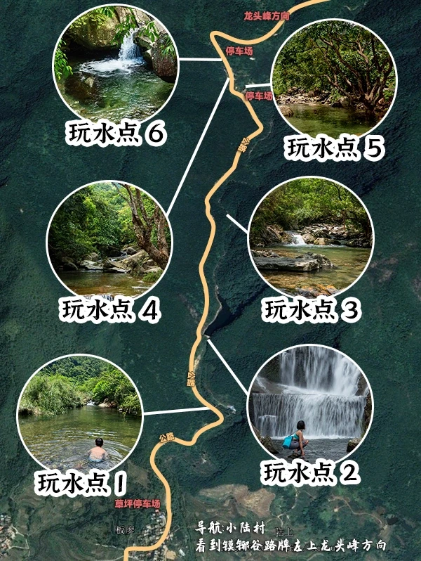 1️⃣ 小车建议停车草坪,坐村民的摆渡车上去。我去的仙女潭的位置在2号营地上去一点点。一路上去有很多玩水点,见图13