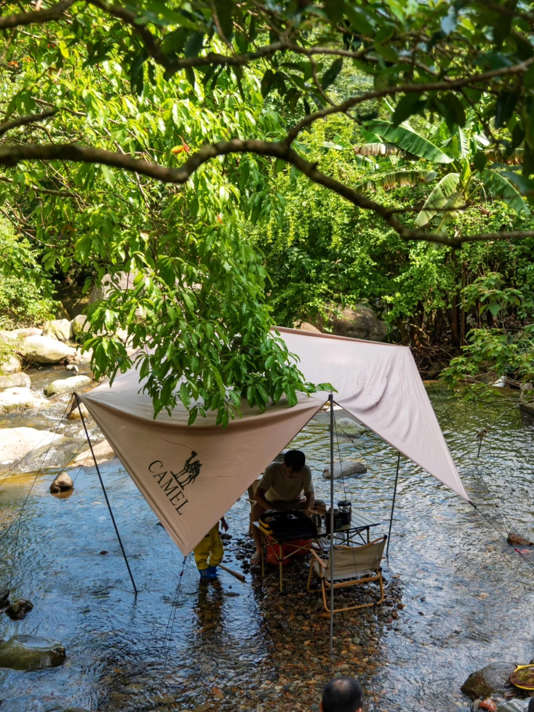 十来分钟在溪边轻松搭建了个夏日避暑阴凉地