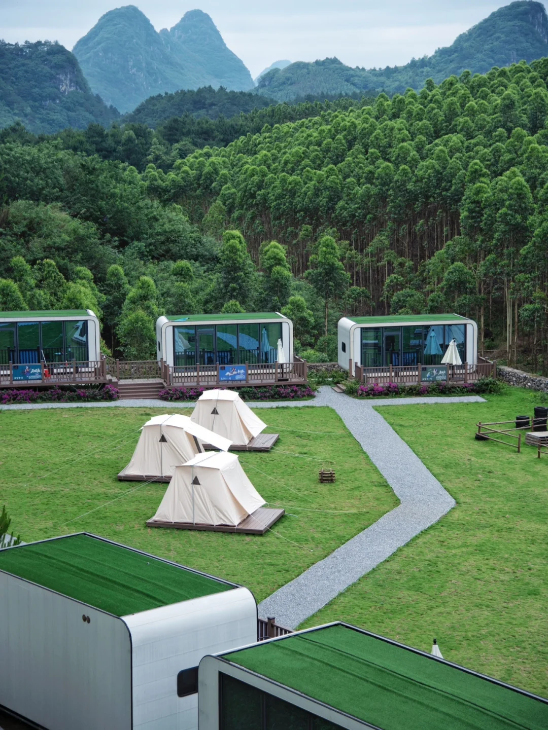 5️⃣回程时候看到有意思的星雨星院营地。峡谷不建议过夜露营,危险系数比较高。如果想过夜第二天再去尽兴,选择这个营地也是不错的