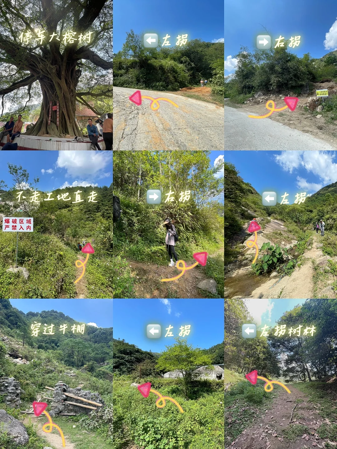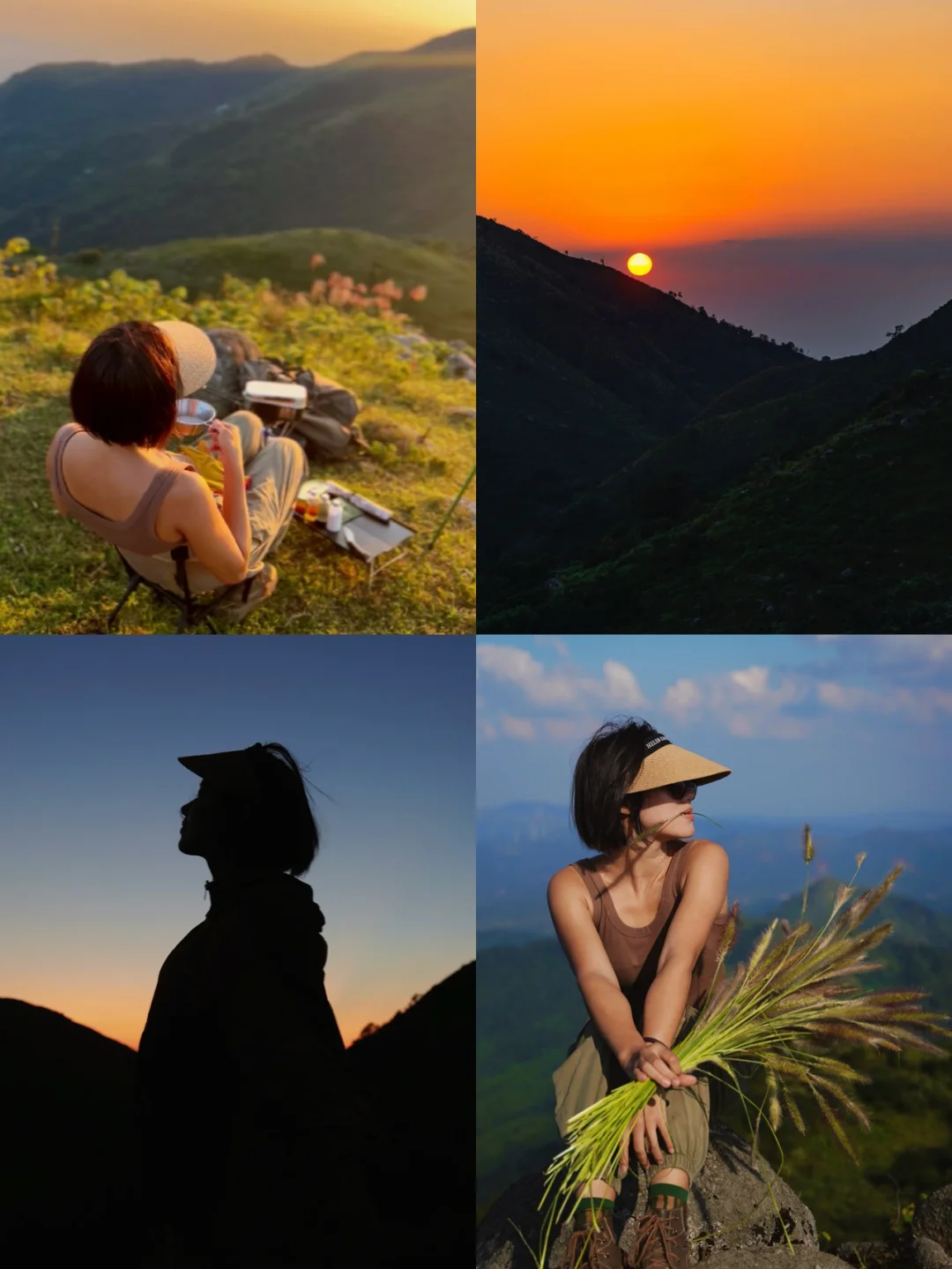 白凿山看溪水潺潺、丛林、高山草甸、三界碑、怪石、小屋…我们去的这条路线,1小时左右就能登顶。 . 👫出行人员:3女2男 . ⏰出行时间:2022年 10月5日 📍导航:武鸣太平镇六梨,南宁市区出发1小时左右↔️,徒步登顶大概1小时左右。 🚗交通:可自驾可跟团(建议跟团有保障),我们是自驾,停车大榕树开始徒步 . 🗺徒步路线: 大榕树🅿️➡施工中的蓄电站➡️牛棚➡ 树林➡三界碑➡️小屋附近落脚看日落➡️树林➡ 牛棚➡蓄电站➡大榕树🅿️ ⚠️注意上山路段很多岔路口,稍不注意容易走弯路,山上信号差,请提前下载好离线地图或轨迹。 . 📷拍照机位: ①半山腰树林 ②三界碑 ③山顶草甸 ④山顶怪石 ⑤山顶小屋 . ❤️徒步装备: 徒步鞋👟、登山杖、厚底袜子🧦、帽子🧢、墨镜🕶️、防晒霜、速干裤、速干衣长袖、水💦2.5L(考虑了做饭和泡咖啡)、背包🎒、头灯(看完夕阳摸黑下山必带)、可手电照明灯、挂耳咖啡、厚椰乳、碗、筷、饭盒(米和油盐酱油就能装进饭盒)、炉头、气罐、打火机、刀、驱蚊液、小药盒、清凉油、相机📷、镜头、防烫手套、野餐垫、线圈、轻量桌板、替换衣服。 tips:下山建议准备个海绵放在鞋内脚尖处可减少脚趾受力 🎒这套装备➕帐篷⛺️➕睡袋➕睡垫就可以过夜露营了。 . ⚠️注意事项: ① 山腰树林比较滑,鞋子🥾要选合脚防滑的 ②尽量轻装上阵,不过夜不煮饭不必像我这么多东西,夜爬建议带头灯 ③不做饭不冲咖啡建议1.5L左右水,备少数干粮补充体力 ④整条路刺球很多,建议厚点的长裤 ⑤ 岔路很多,建议提前做好攻略,难度比较轻松,建议10岁以上热爱户外的小孩前行 ⑥ 钻鼻子和眼睛的飞虫较多,建议戴个沙面罩,这种虫驱蚊水无效 ⑦户外注意防蚊防寒防晒 ⑧户外徒步有危险,请量力而行,出行请爱护环境,垃圾随人走 .