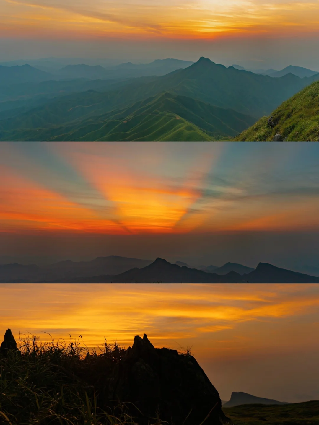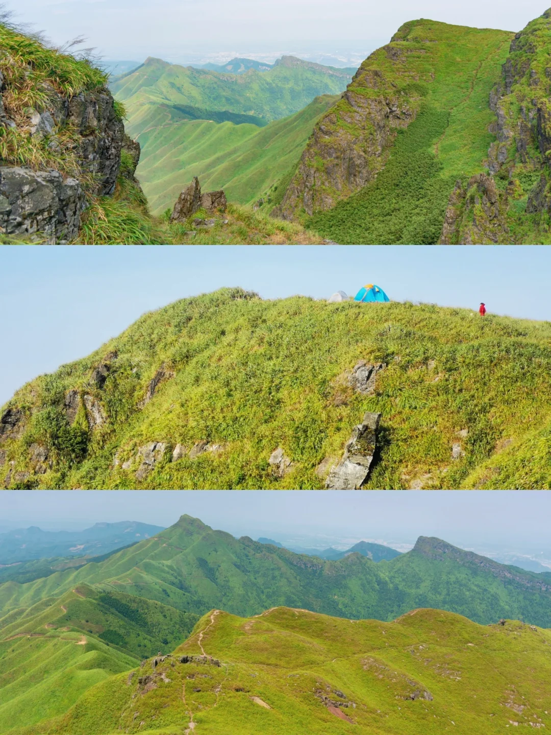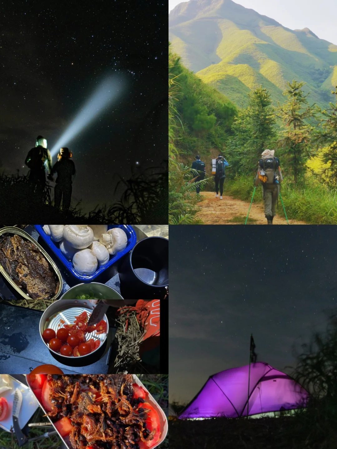 为了能看日落、看星空、看日出,我们决定重装徒步大圣山。 . 👨‍👩‍👧‍👧出行人员:1名露营爱好者我;2名网球爱好者;1名北京返邕领队 . ⏰出行时间:2022年 9月3~4日 📍导航:宾阳小圣山,市区出发1.5小时↔️ 🚗交通:可自驾可跟团(建议跟团有保障),我们是小轿车自驾,车停在小圣山脚下。越野车皮卡🉑️开到上下环线交汇处。 . 🗺徒步路线:大圣山经典环线 起点➡️下环线➡️交汇处➡️山神庙➡️次峰露营➡️第二天主峰➡️返回➡️上环线➡️小圣山➡️终点。想要轨迹的可撩 . ⌚️登山耗时: 去程3小时↔️,16:18起点出发➡️19:30到达次峰 回程4小时↔️,10:15大圣山主峰回程➡️14:16到达终点 . 📷拍照机位: ①上下环线交汇处 ②山神庙 ③大圣山次峰 ④大圣山主峰,一路上有好几处非常不错的机位 ⑤小圣山峰顶 . ❤️徒步必备装备: 徒步鞋👟、厚底袜子🧦、帽子🧢、墨镜🕶️、防晒霜、速干裤、速干衣长袖(注意防晒)、水💦、干粮、轻量化背包🎒 tips:下山建议准备个海绵放在鞋内脚尖处可减少脚趾受力 . ❤️推荐用品: 登山杆🦯、徒步鞋🥾、刀🔪(开路用)、汗巾、冰袖、塑料袋、备用衣物🥼、照相机📷、三脚架、头灯💡、手电筒🔦、防水袋、充电宝、跌打💊、止血贴、驱蚊液、湿巾 . ⛺️过夜装备: 帐篷、气垫、支架炉头、气罐、饭盒、米、罐头、青菜、碗、杯子、筷子、勺子 . ⚠️注意事项: ①尽量使用轻量化背包🎒,有背负系统、有外挂系统更佳; ②鞋子🥾要选合脚防滑的; ③水2L以上+一瓶功能饮料,过夜需要再多带一些; ④登山杖能很大程度省力,在滑坡路段还能起到支点固定作用; ⑤徒步的路线要提前查好攻略📝,下载轨迹或离线地图到手机📱上,以防户外没信号迷失方向; ⑥山顶风很大,建议多带长钉粗钉; ⑦户外注意防蚊防寒防晒; ⑧一切的用品都往轻里挑; ⑨有些徒步路线比较危险,请量力而行 出行请爱护环境,垃圾随人走 .