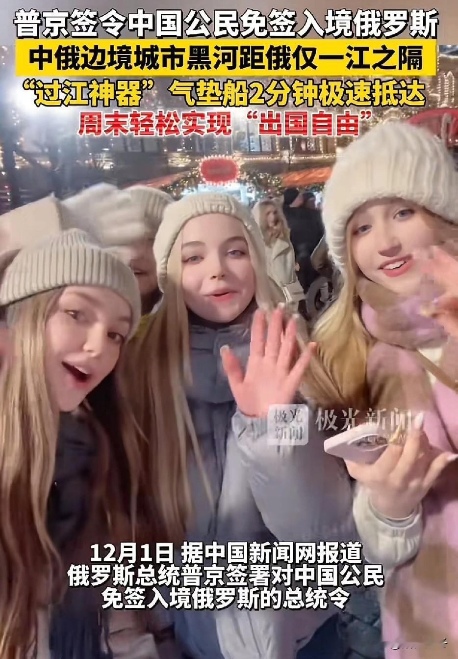 普京签署总统令,俄罗斯免签来了![鼓掌] 政策刚生效,赴俄机票搜索爆增8倍,预定量高达5倍,不得不说普京这波操作还是挺秀的。 中国游客不去日本了,这波流量被俄罗斯成功截胡,普京成功抓住了商机,既促进了两国人民的友谊,还能小赚一笔,一箭双雕啊! 就在刚刚俄罗斯总统普京在克林姆林宫签署了命令,从今天起一直到2026年9月14日,中国公民可持普通护照,就可以在俄罗斯畅玩30天,走亲访友、旅游、商谈都更便捷了。 其实俄罗斯还是有不少地方是值得一去的,比如看看一望无际的雪景,还可以零距离欣赏梵高的名画真迹,还有各式古老的建筑,特别男生一定要去体验一下靶场的实弹射击一定特别刺激。 宝子们放下手中的工作,来场说走就走的旅行吧!趁年轻让我们再任性洒脱一次吧![碰拳]俄罗斯籍旅游 中俄互免签证 免签政策 中国旅游免签 俄罗斯旅游