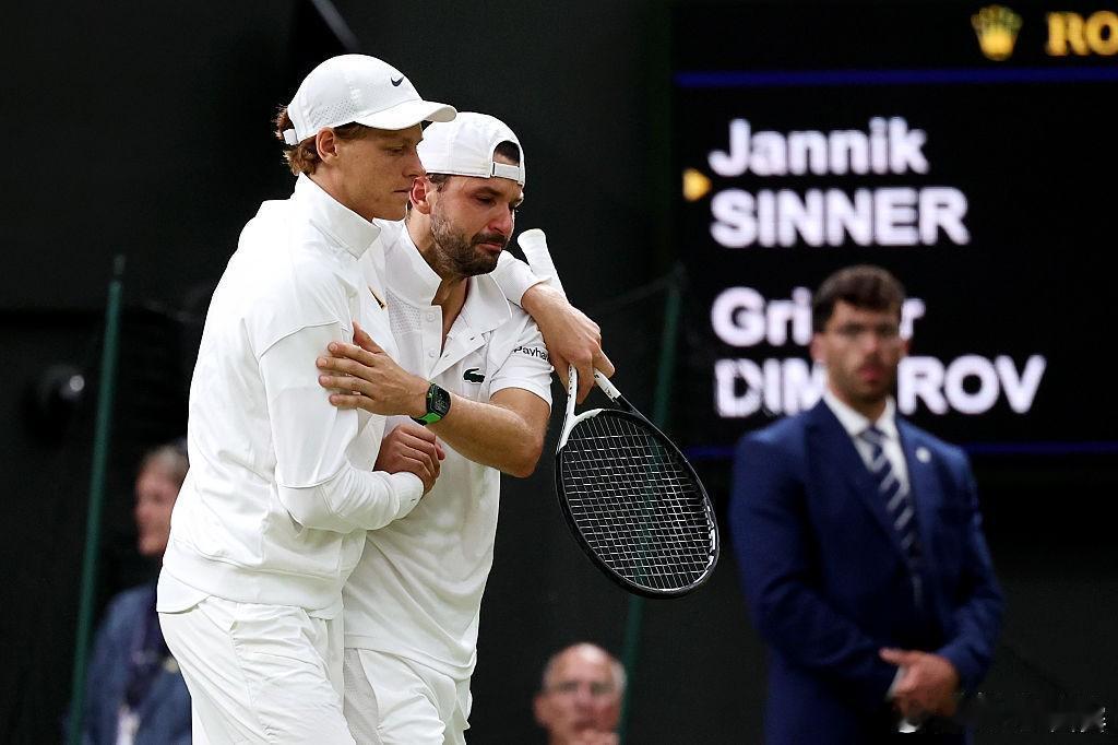 个人评选今年大满贯TOP10之三 今年温网,辛纳3-1阿尔卡拉斯首夺温网男单冠军的同时,也残忍拒绝了阿尔卡拉斯温网三连冠之梦,而辛纳在本届温网最为庆幸之处,也许就是第四轮0-2迪米特洛夫时幸运受到老迪米送上的退赛礼,这场比赛,也许真的是一场原本有望改写今年四大满贯格局的比赛。 回到这场辛纳与迪米特洛夫的比赛之中。老迪米从开场就牢牢把握场上主动,辛纳几乎一直处于疲于应付的被动境地之中。也正因此,保加利亚老将得以6-3、7-5连下两盘,已经看到了击溃辛纳的曙光。可惜,第三盘2-2时,迪米特洛夫无奈伤退,他也遗憾地连续5次大满贯都是因伤退赛。 如果没有不期而遇的伤病问题,老迪米也许真的可能创造今年四大满贯最让人意想不到的比赛。也正因此,如果老迪米没有退赛,本赛季四大满贯的男单冠军,还是会由辛纳和阿尔卡拉斯分享吗?