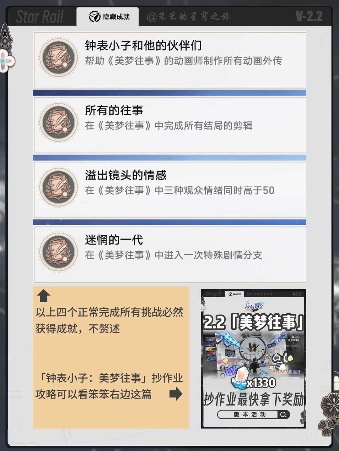 🐱大家好,我是笨笨 今天给大家带来的是最新的版本活动 一共10个成就获取攻略 版本活动是不会下线的,一直可以获取 大家挑战之前可以先看看成就栏是否有这几个成就 位置在成就合集「与你同行的回忆」的最最下面 而且是连在一起的
