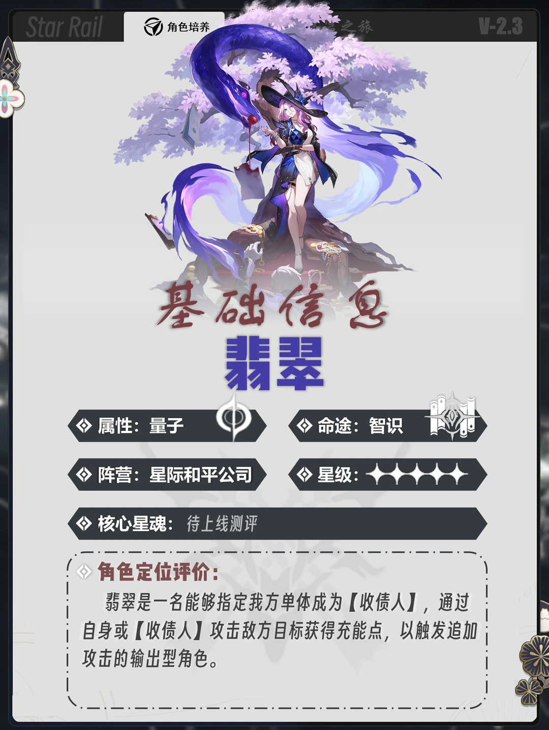 🐱大家好,我是笨笨的铲屎官 翡翠的晋阶材料来啦 想要抽的开拓者可以提前准备起来了 ➡翡翠通过前瞻直播看下来 是属于智识的追加攻击主C/副C 有点类似托帕在真托追击队的定位 可以想象翡翠在虚构叙事相当好用 有群伤,还有追击机制 笨笨已经在准备材料了,必拿下