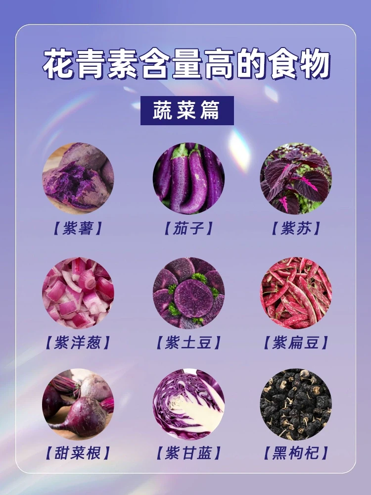 📝花青素(anthocyanidin)又称花色素,是自然界一类广泛存在于植物中的水溶性天然色素,广泛存在于花、果实、茎、叶等组织的细胞液中。花青素可以使食品呈现鲜艳的色泽,同时也是食品中一种重要的抗氧化活性成分。