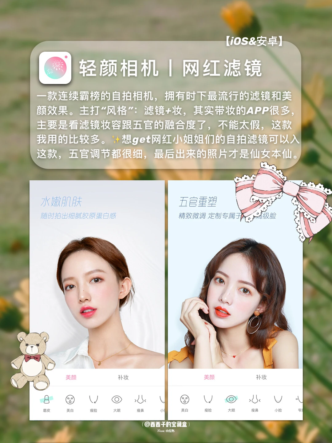 [派对R]8款强大的美颜相机APP帮你出大片! · 💐轻颜相机丨网红滤镜 · 💐美颜相机丨美颜鼻祖 · 💐Faceu激萌丨动态贴纸 · 💐一甜相机丨少女感滤镜 · 💐水柚相机丨清晰高质感 · 💐Foodie丨美食相机 · 💐Focos丨单反相机 . 💐WIDE|一键Vlog · 🌼相机APP这么多,选择1-2款喜欢的就好啦~ 🌸小仙女们出游都需要美上加美呦! . 西西子总会发现宝藏app:有趣,有料,有价值,推荐那些你不知道,但是特别实用的APP