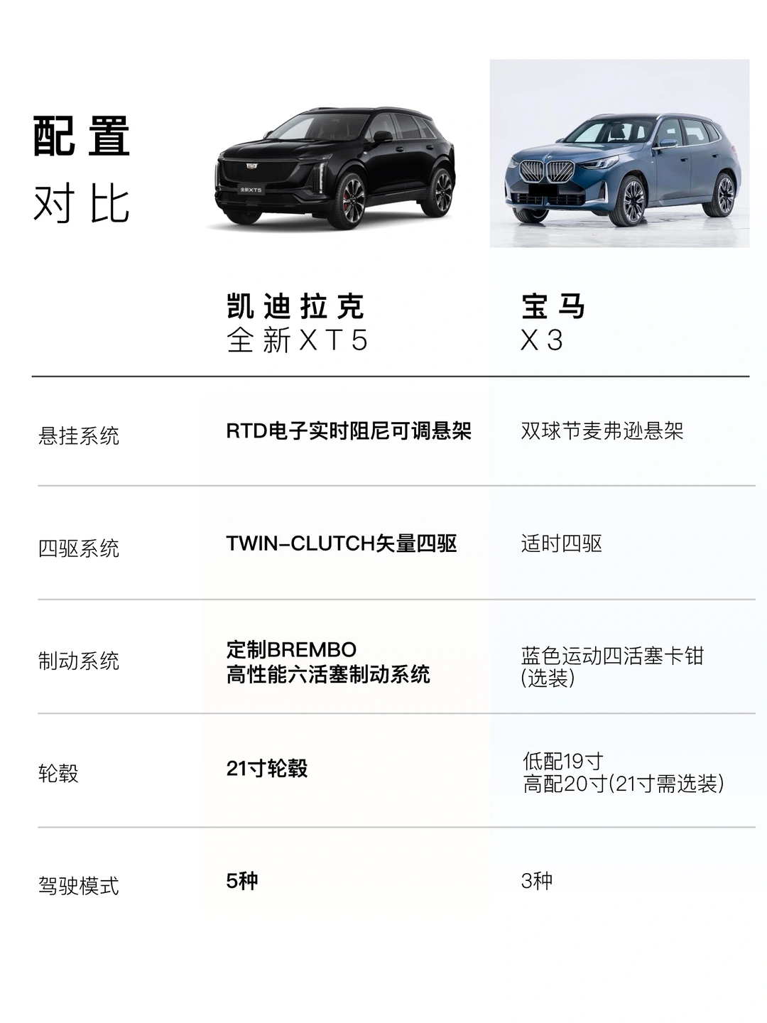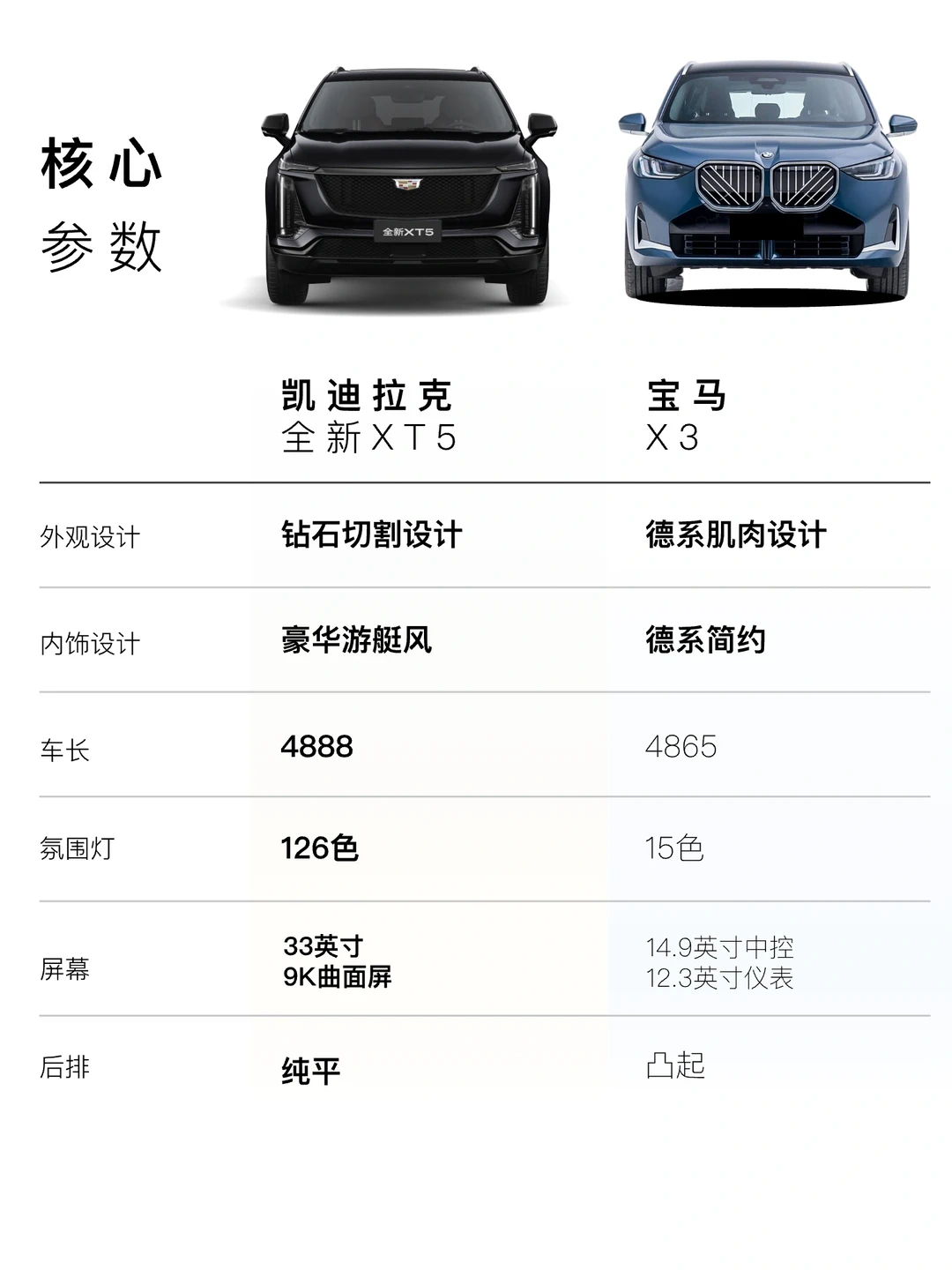 凯迪拉克全新XT5带着价值10万+的“满配权益礼包”强势来袭,与刚刚上市的宝马X3相比,两款豪华SUV,哪一款更值得入手?今天就从产品和权益两个方面来一探究竟