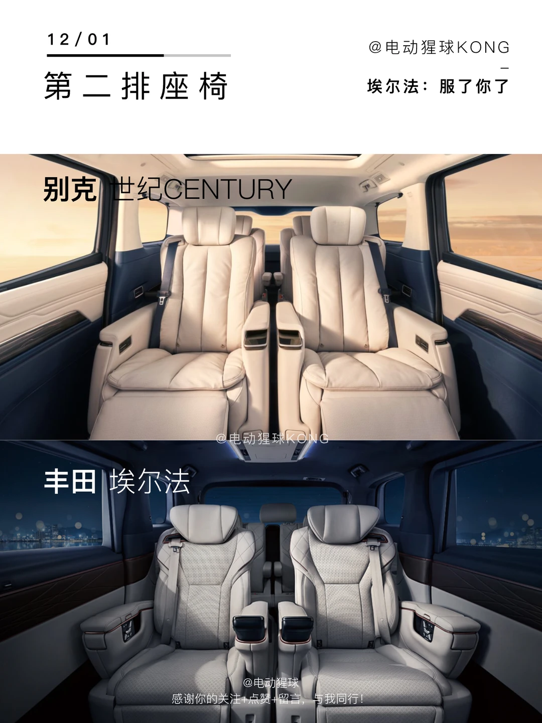 别克新款世纪上市,曾经埃尔法同级难寻对手还要加价,如今别克世纪问世,Fine Nappa半苯胺真皮包覆,2排12层面料✈️航空座椅,舒适性、豪华感都不逊色 🤖智能化方面,别克世纪上了主流的8155芯片+15.6吋后舱智慧屏,支持NOP辅助驾驶,手握100多个W,你会加价提埃尔法,还是提新款别克世纪?