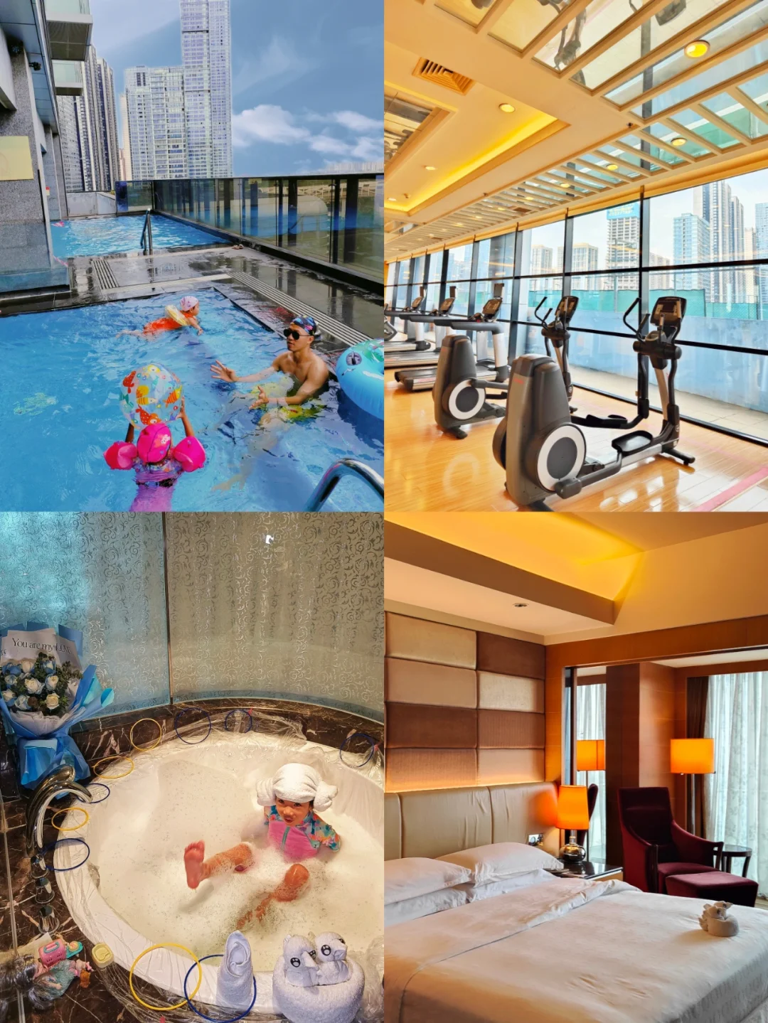 玩:入住酒店后,在酒店健身房、户外游泳池都值得体验,户外泳池还有迷你的儿童池可以玩。酒店户外还有一个半马跑道,喜欢运动的小伙伴可以去感受一下美景和跑道哦。