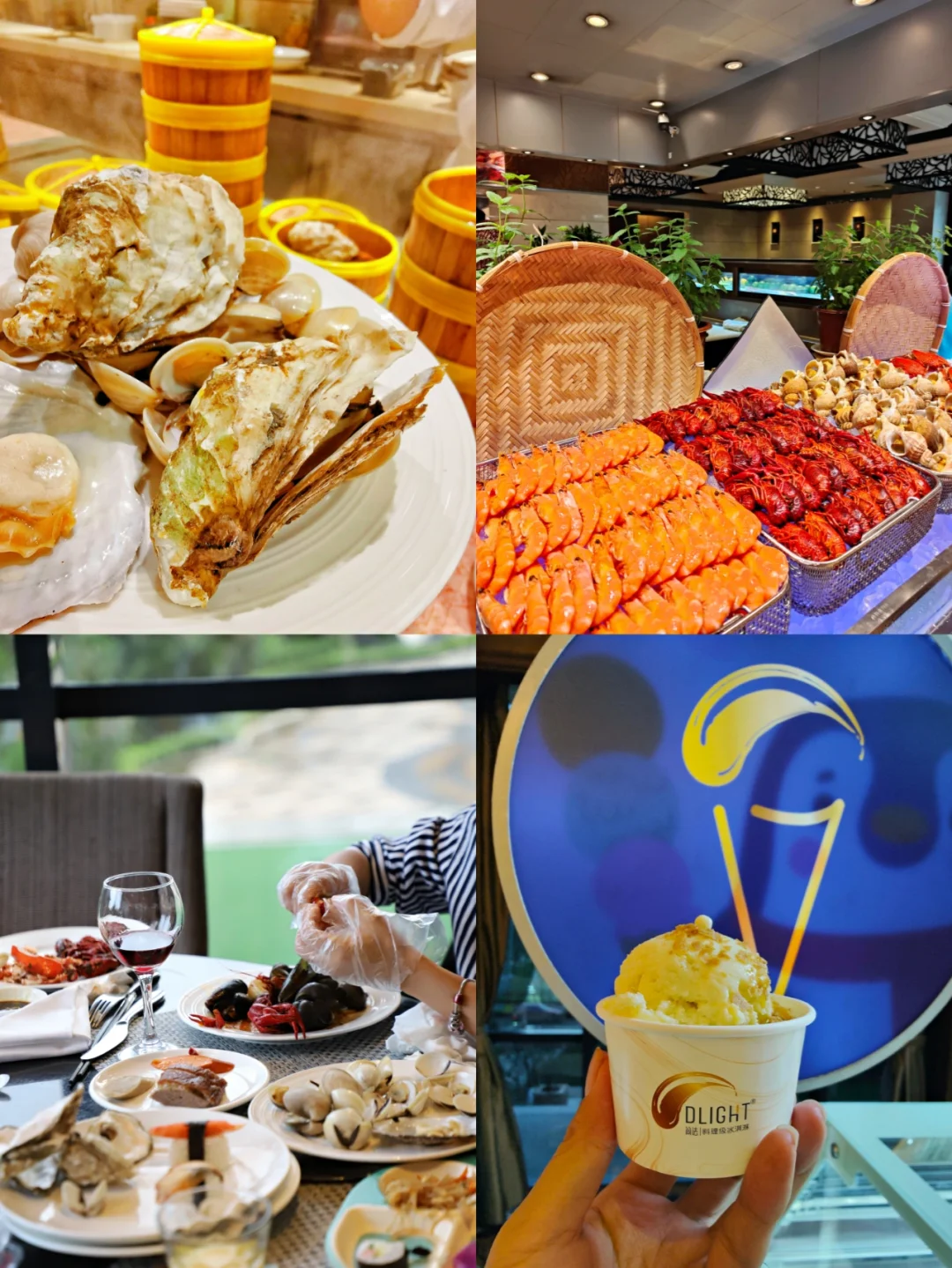 吃:餐厅的自助晚餐超丰盛,承蒙喜来登品质美食的厚爱,大胃不弃,实现海鲜自由了,感恩盛宴餐厅赐予的美味,感恩笼仔蒸海鲜,燕麦奶茶,冻柠茶,缤纷甜品,生蚝,冰镇小龙虾都是今晚zui佳,菜品新鲜,新上线的荔枝柚子味雪糕都是惊喜的味道,顺德果然是美食之都啊,希望以后的日子里,眼里是阳光,笑里是坦荡,胃里是美食。
