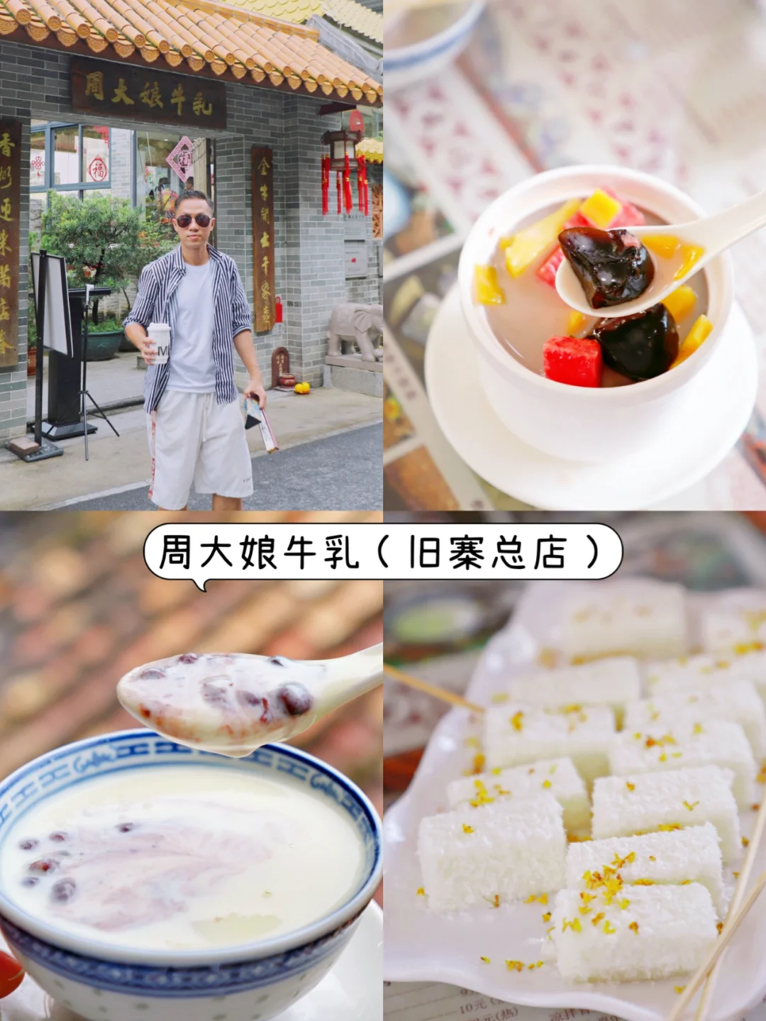 顺德的特色甜品也要试一下,周大娘牛乳的特色甜品很多,各种水牛奶和凤凰奶甜品换着花样吸引人,双皮奶,姜撞奶,桂花椰蓉牛奶冻,水果龟苓膏,盲点都不会错,很好吃。