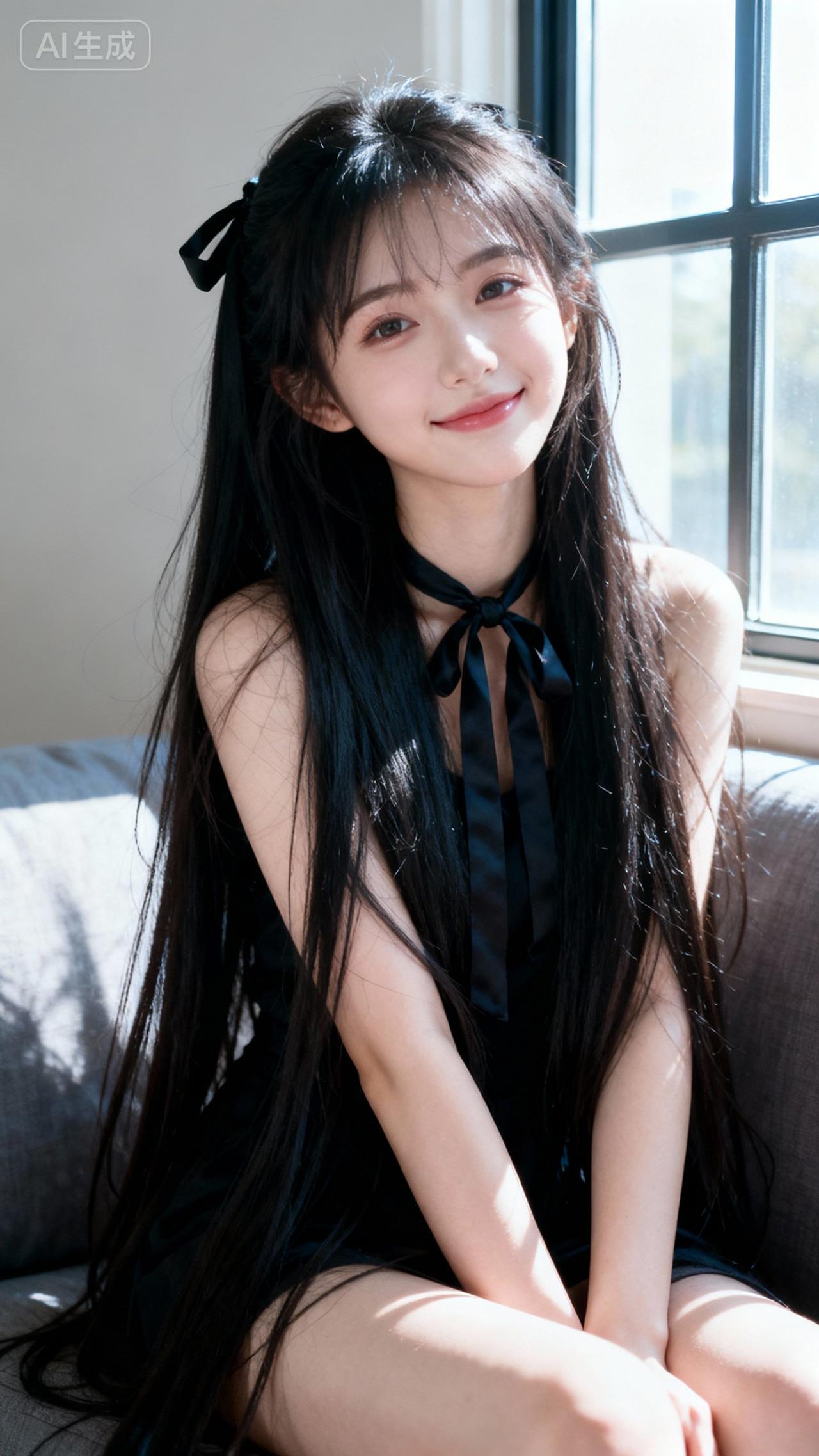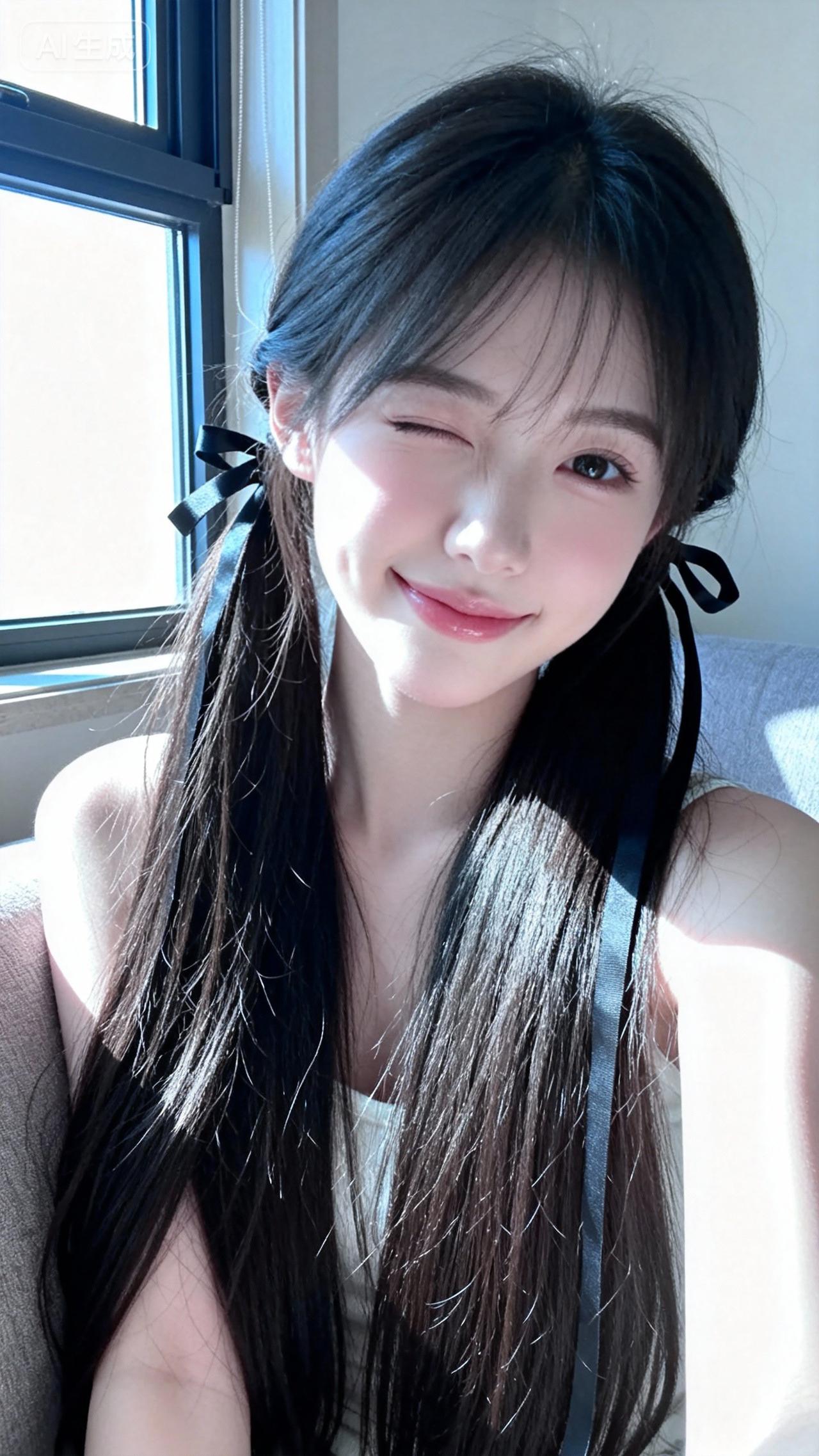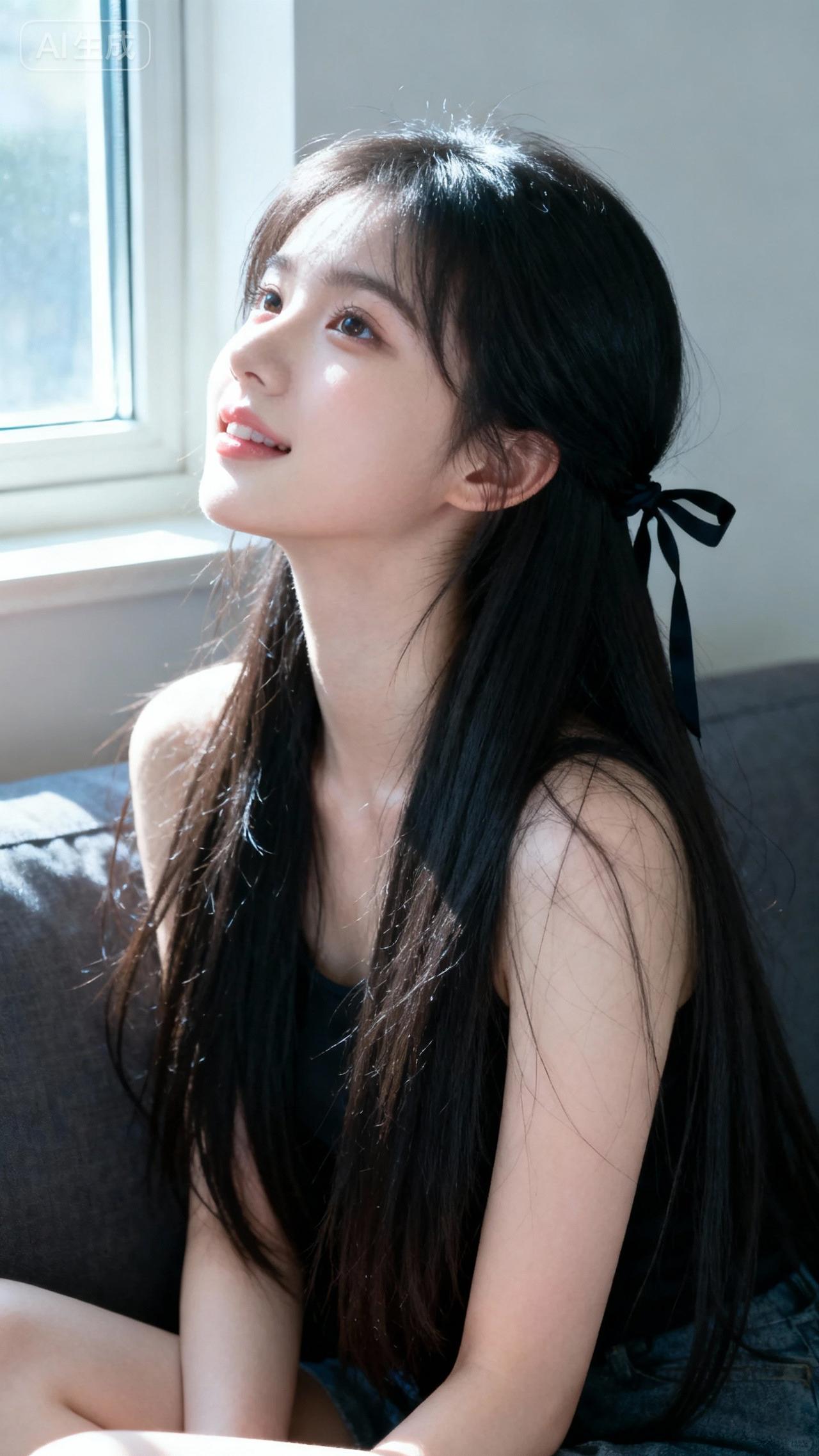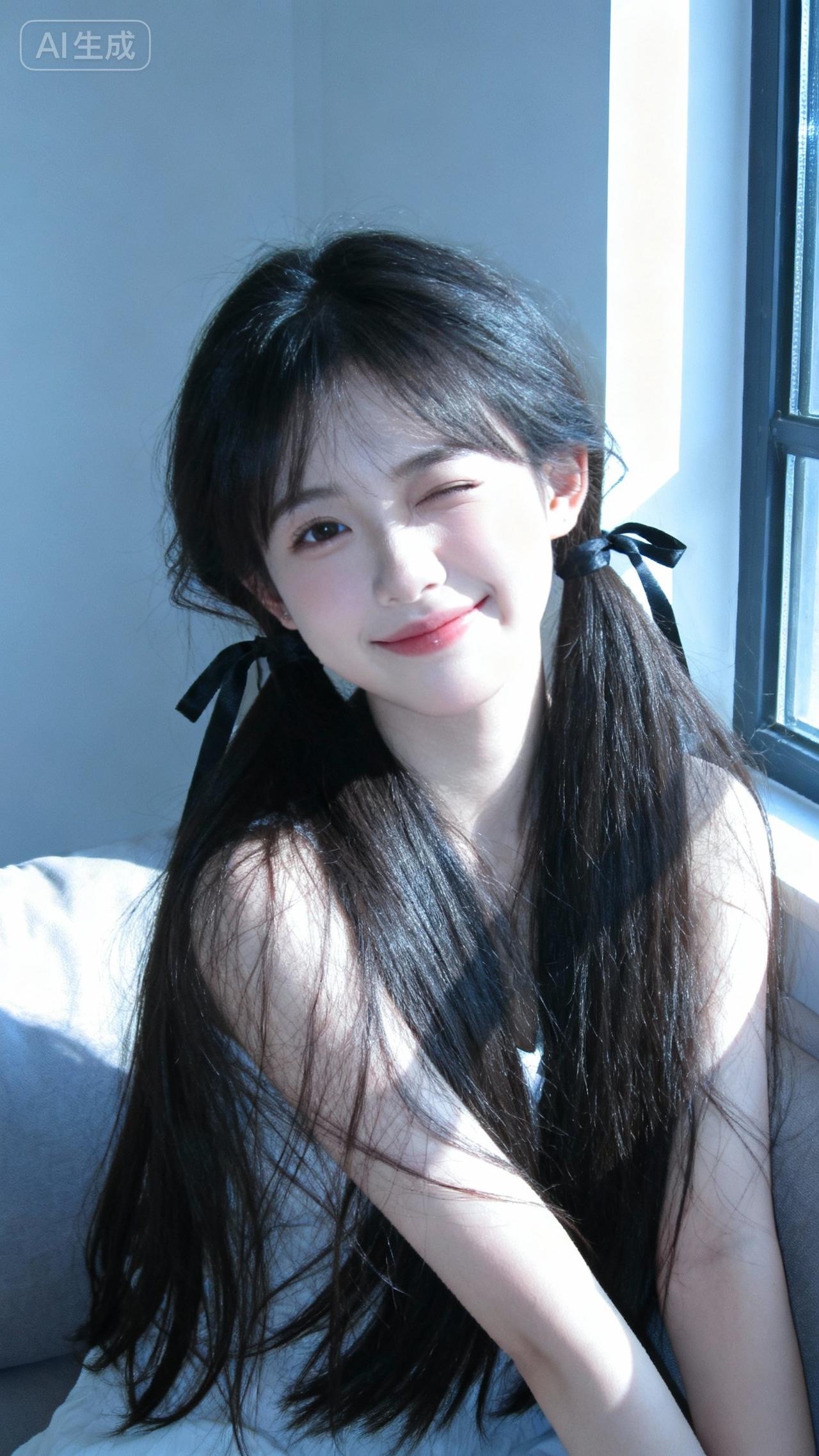 阳光洒在她微笑的脸庞上。