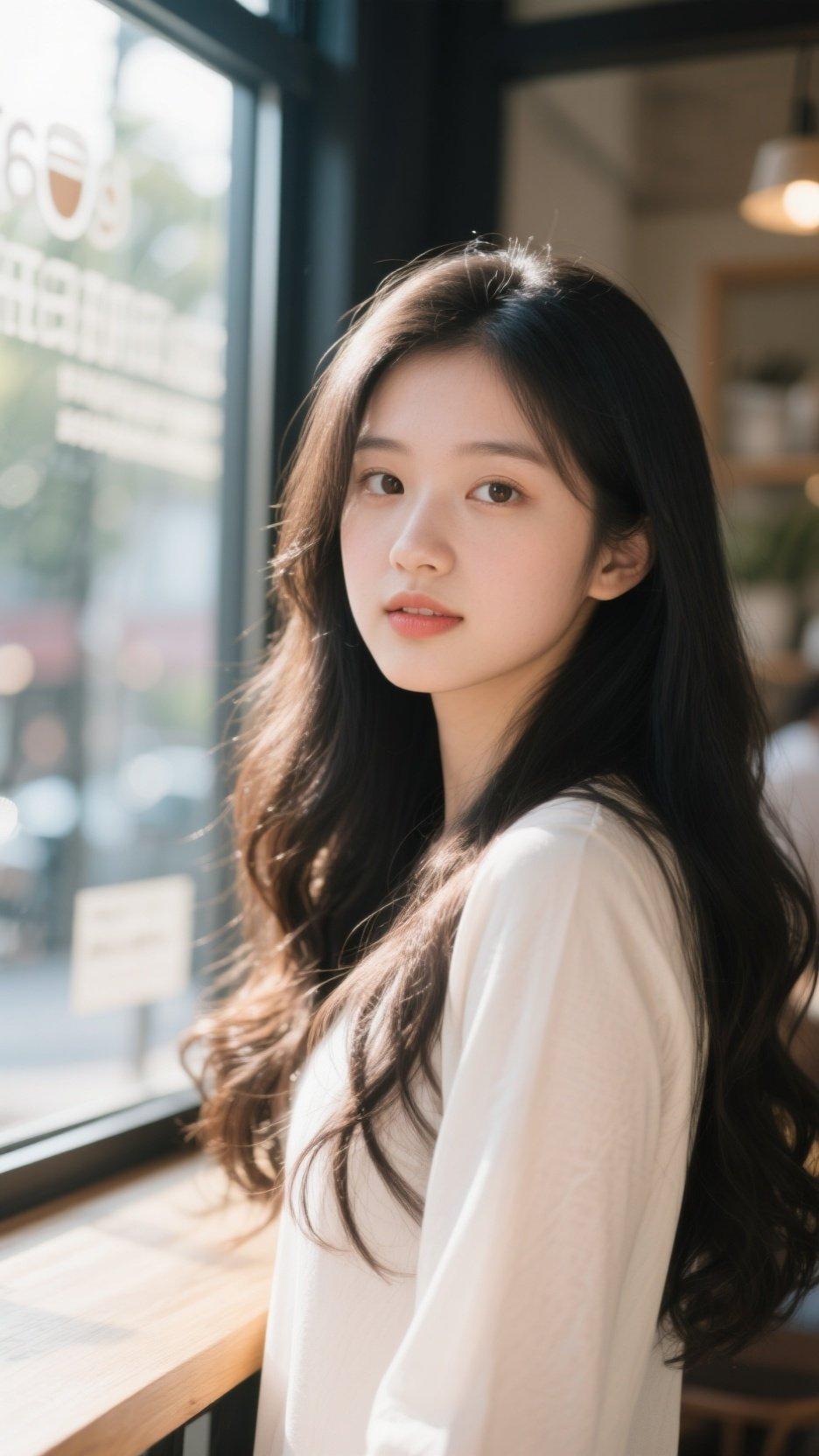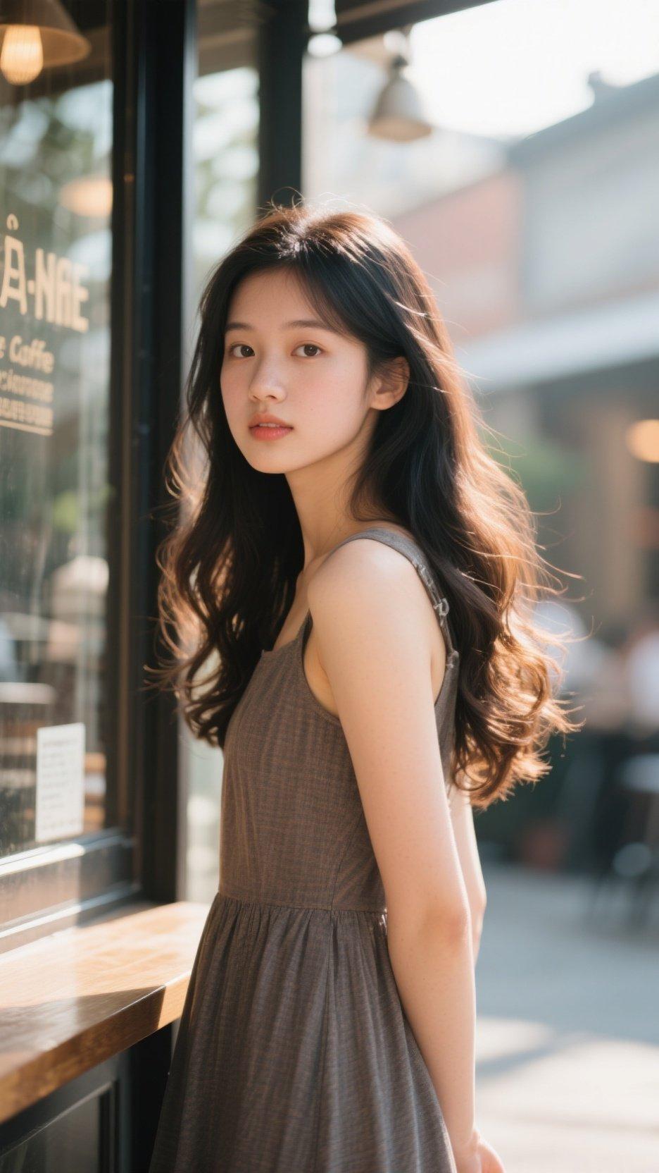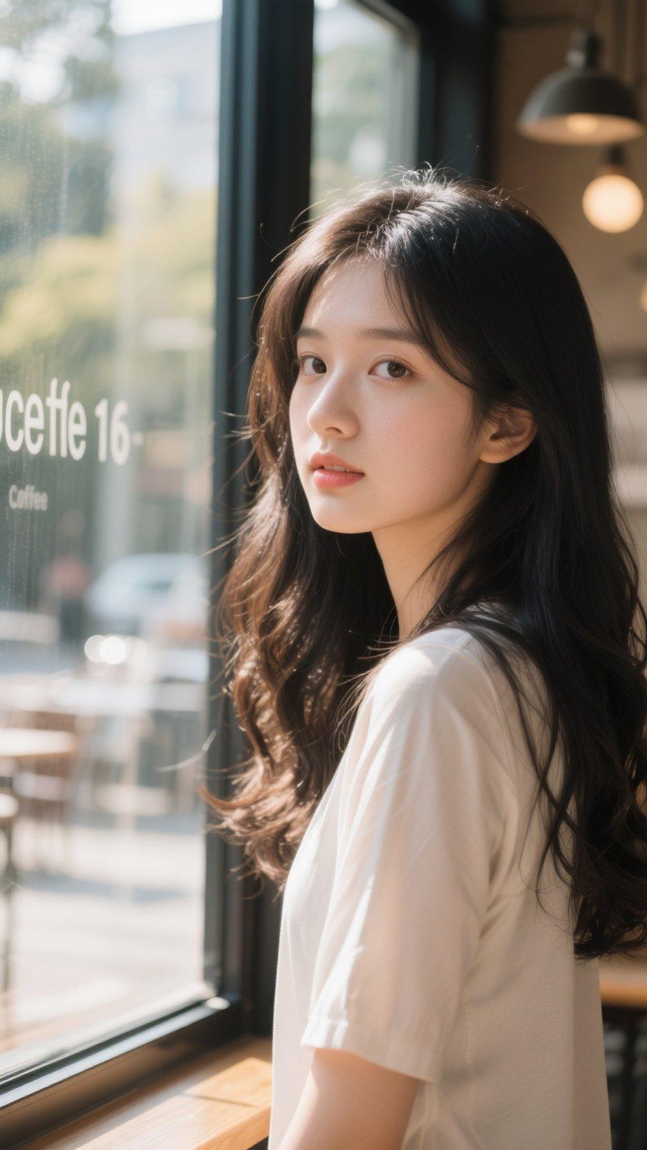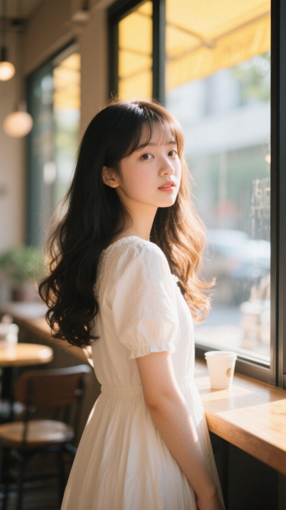 在绿意盎然的湖畔,她如仙子般静坐,裙摆轻拂水面,宛如梦境。