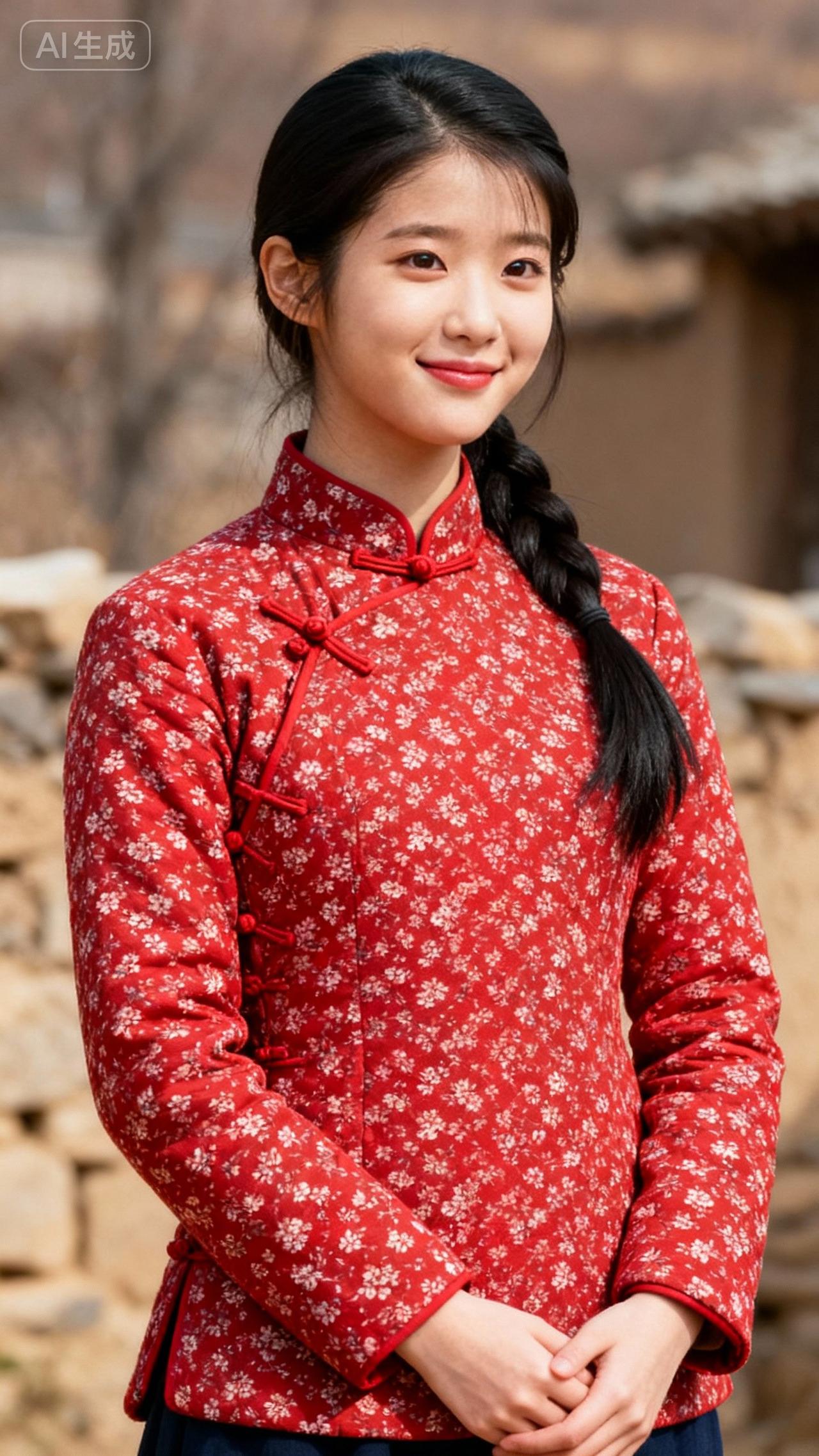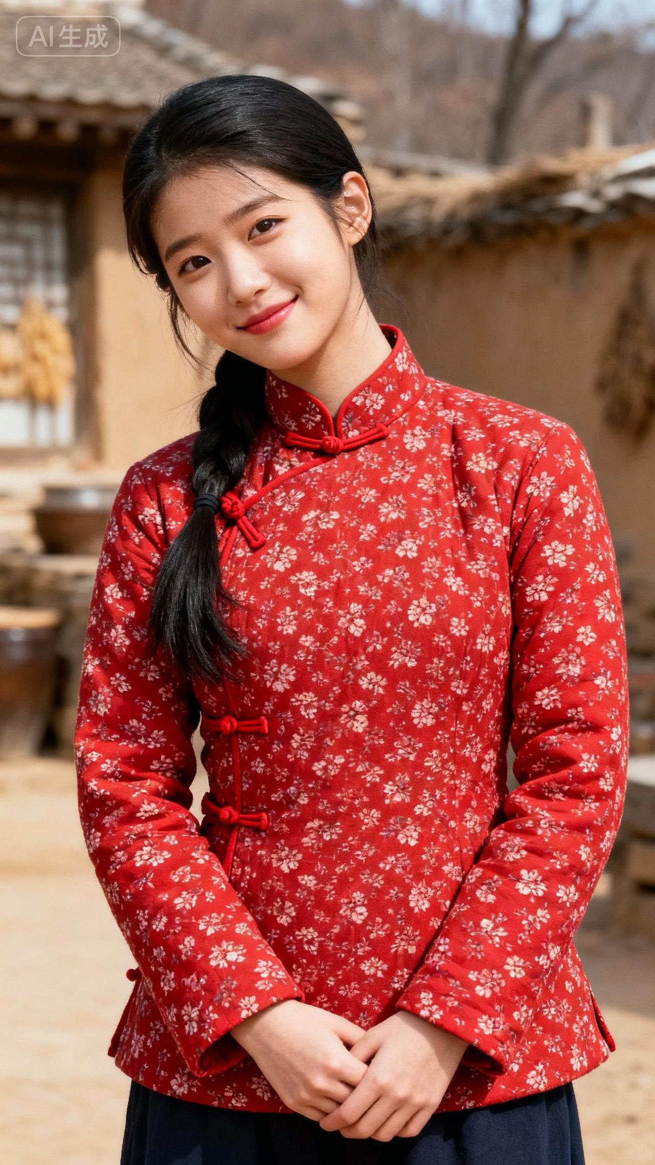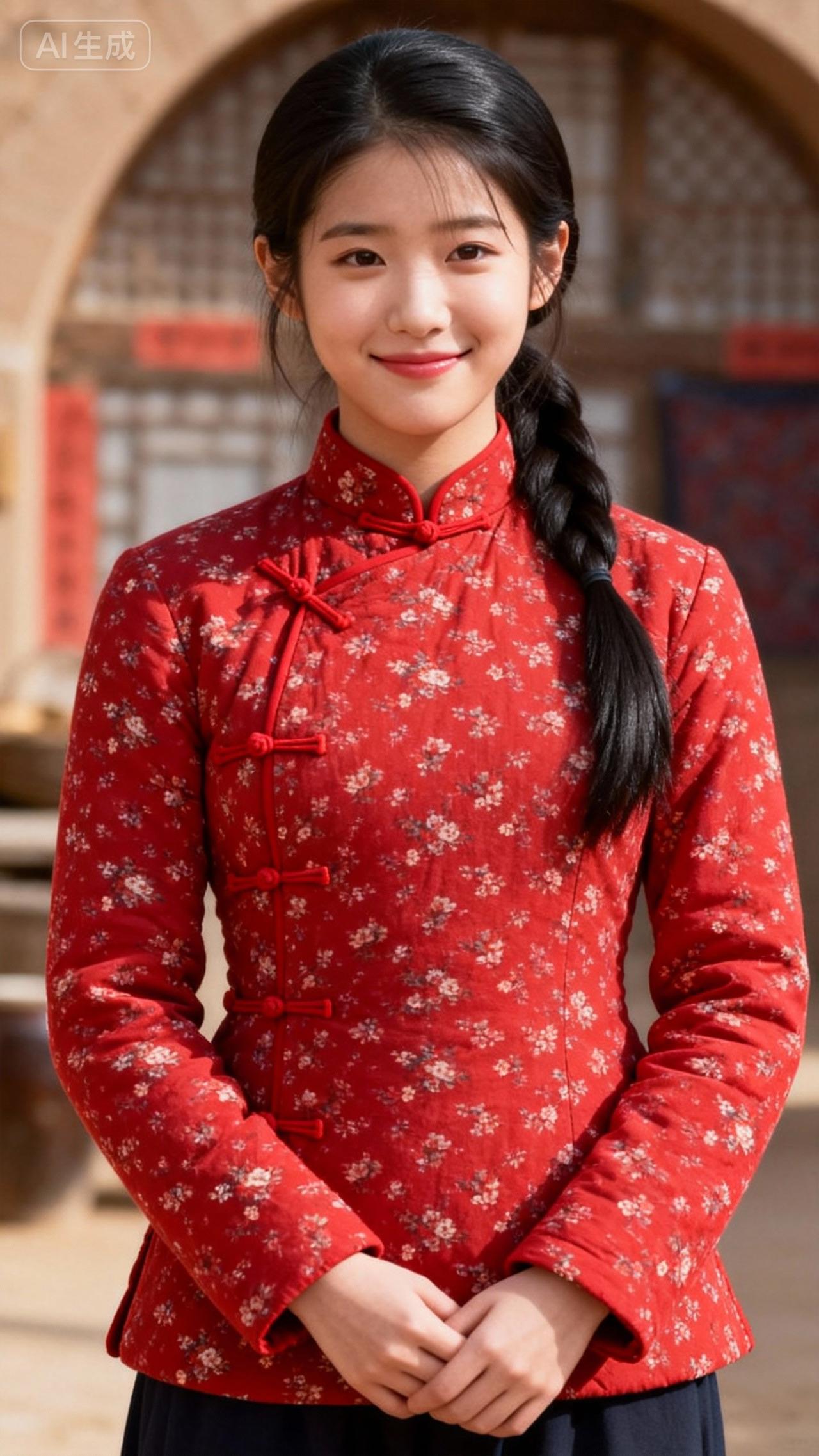 红衣少女笑,古风韵意长。
