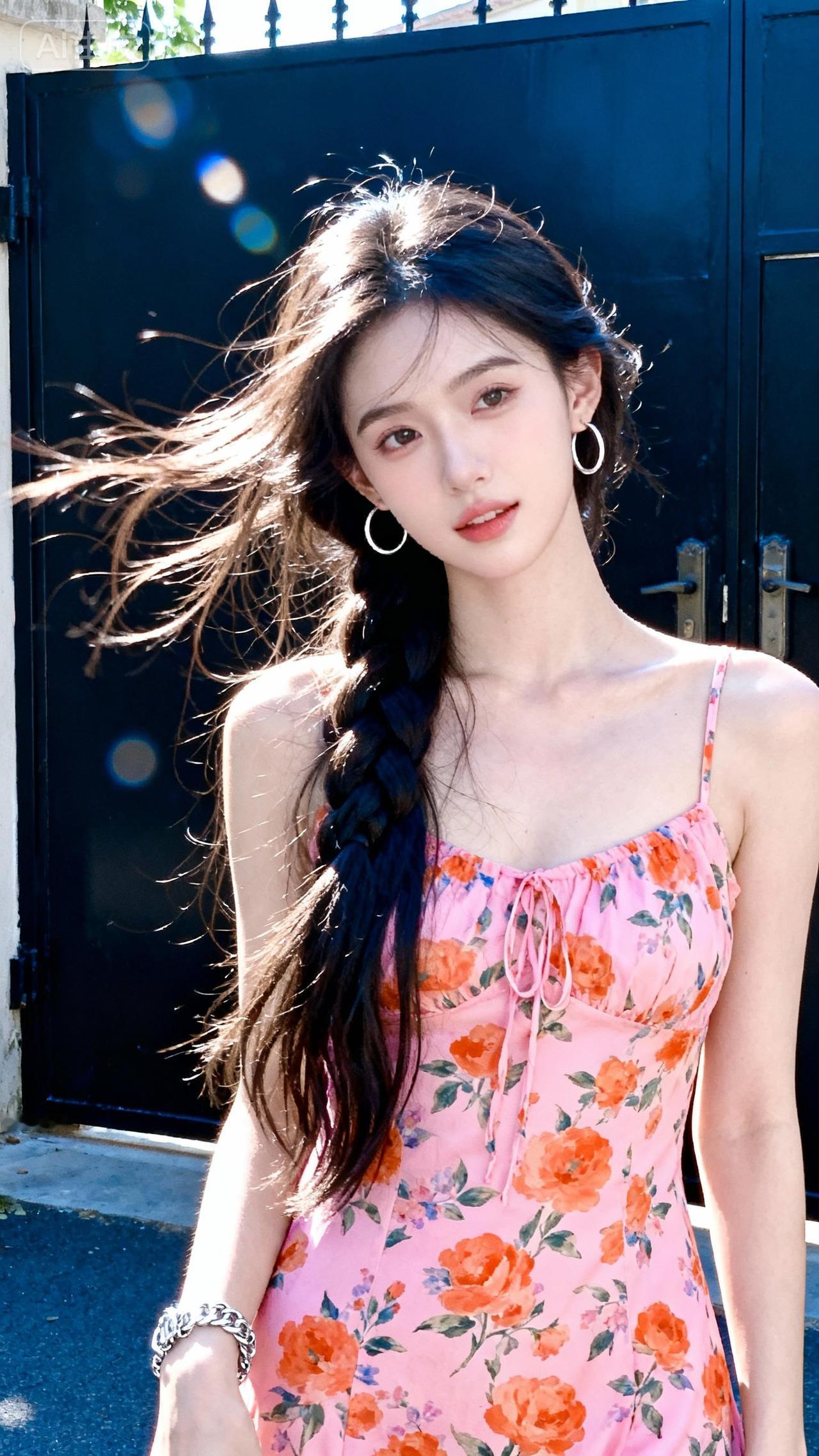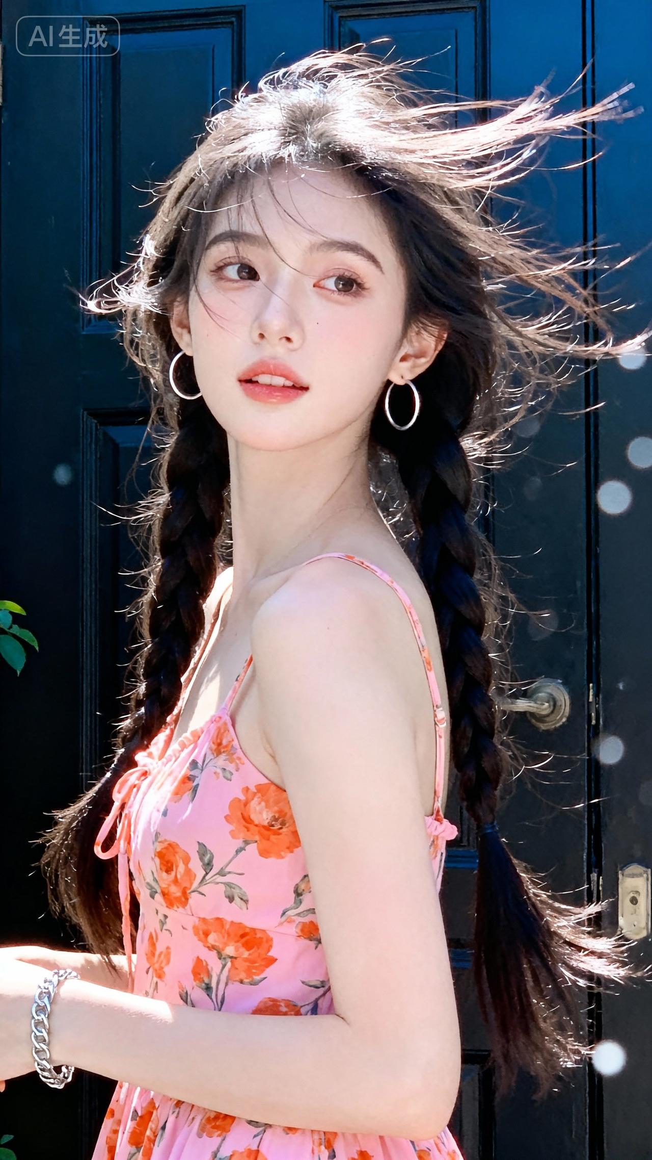 光影裁出侧颜棱线,眉眼盛星芒,唇似粉樱轻启。发丝曳动暗调温柔,静时如诗沉淀,动处