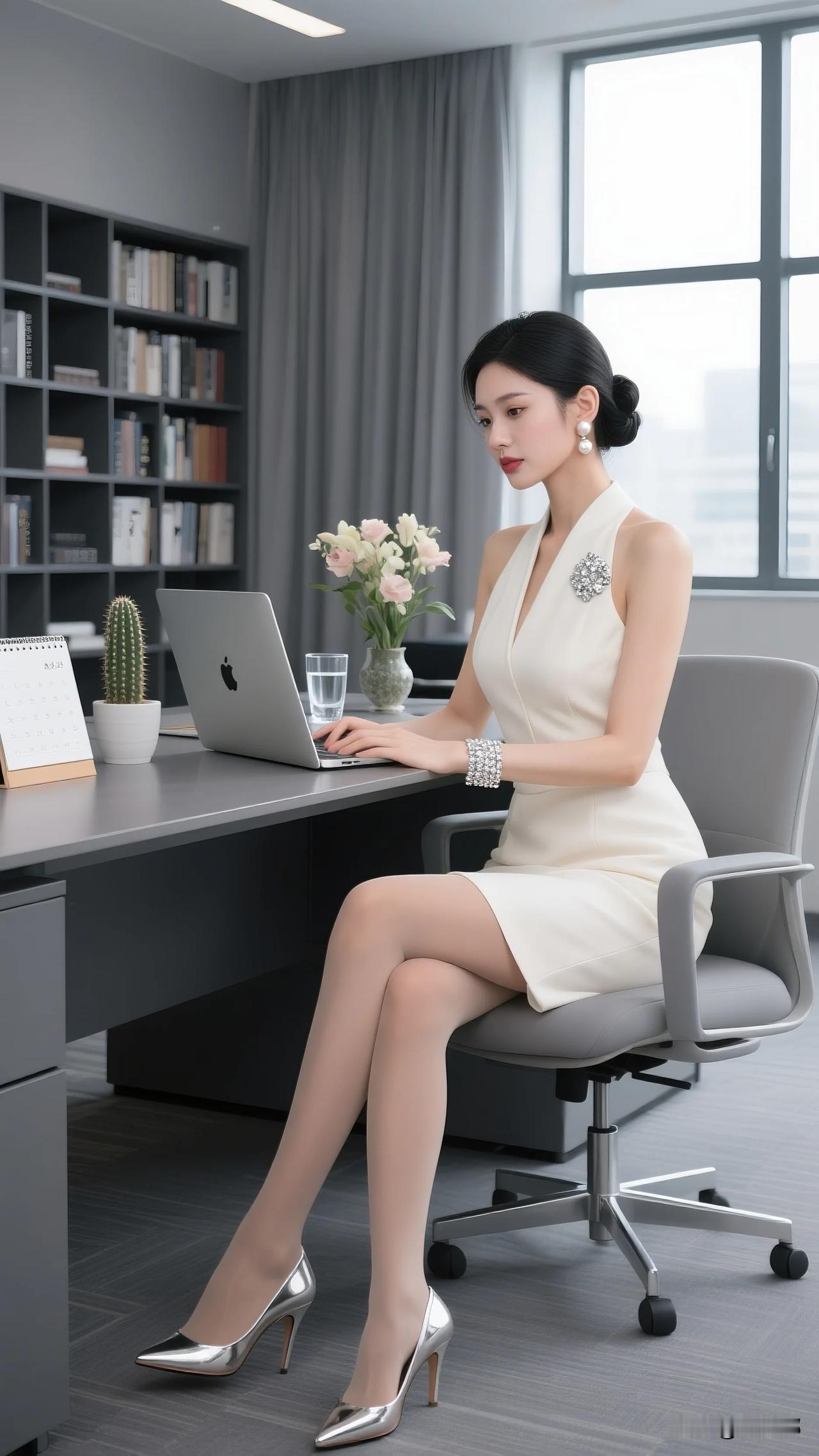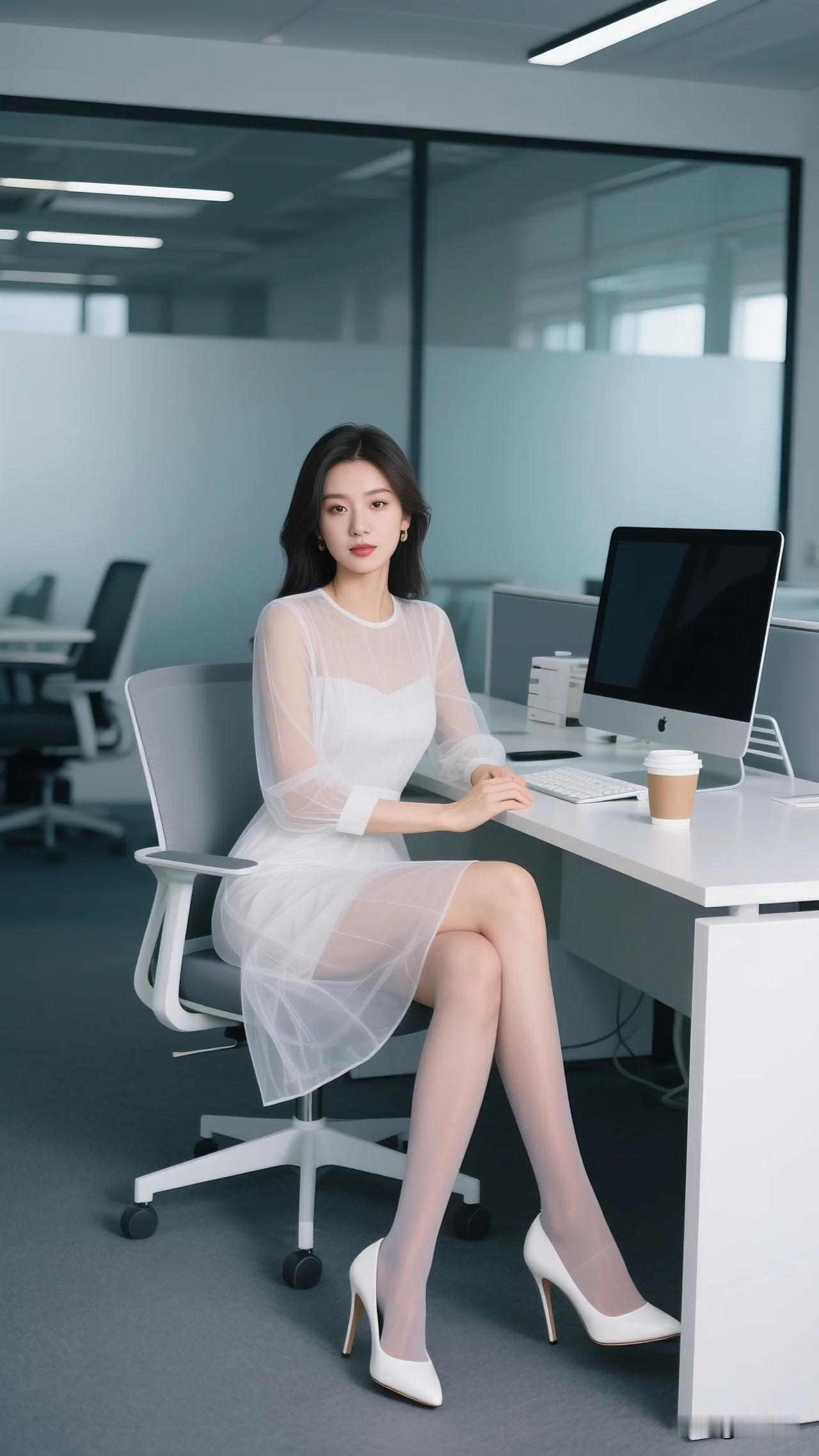 优雅白领风,白色透视连衣裙,办公室里的时尚女郎