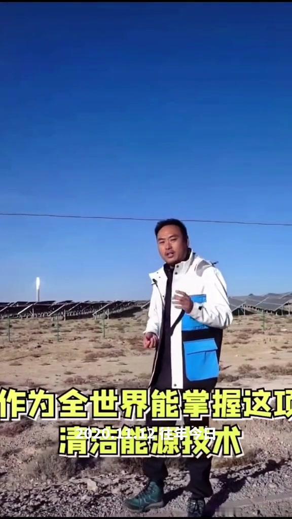 青海戈壁现"光棱电塔"!1️⃣熔盐塔式光电站震撼亮相:200米高的光柱在100公里外可见,360个足球场大的场地里,27000块定光板随太阳自动转向,将光反射到塔顶加热熔岩至1000℃,落山后仍靠熔岩持续发电,24小时不断电。 2️⃣26万片集光器+敦煌最大光电站:除了德令哈这座我国首个,甘肃敦煌还有全球最大光电站,两者技术同源,每年为数百万人送去清洁能源。 3️⃣大国实力闪耀戈壁:我国掌握这项技术的国家之一,两座电站创造世界第一,看着它们就为中国骄傲,向大国崛起致敬!