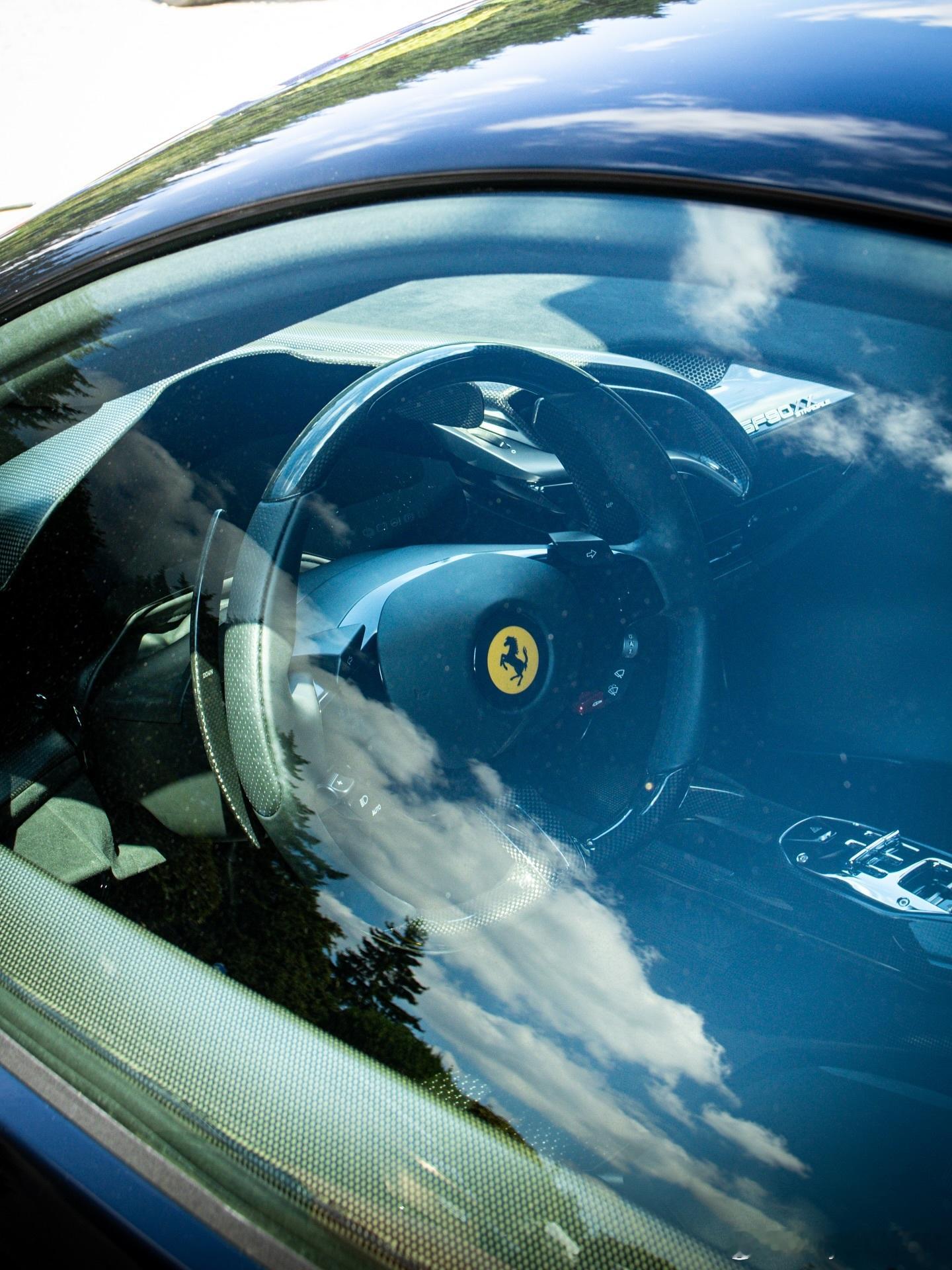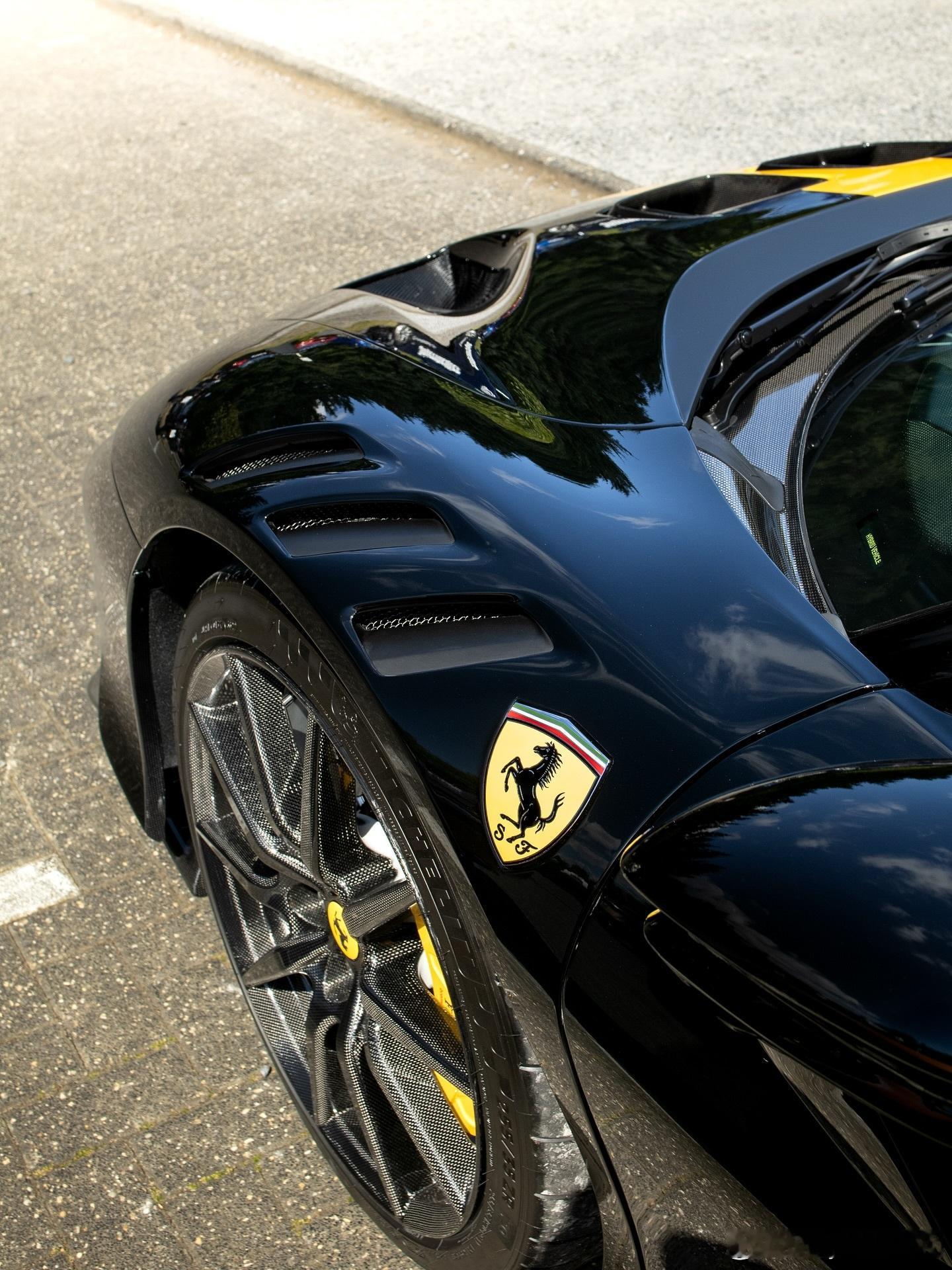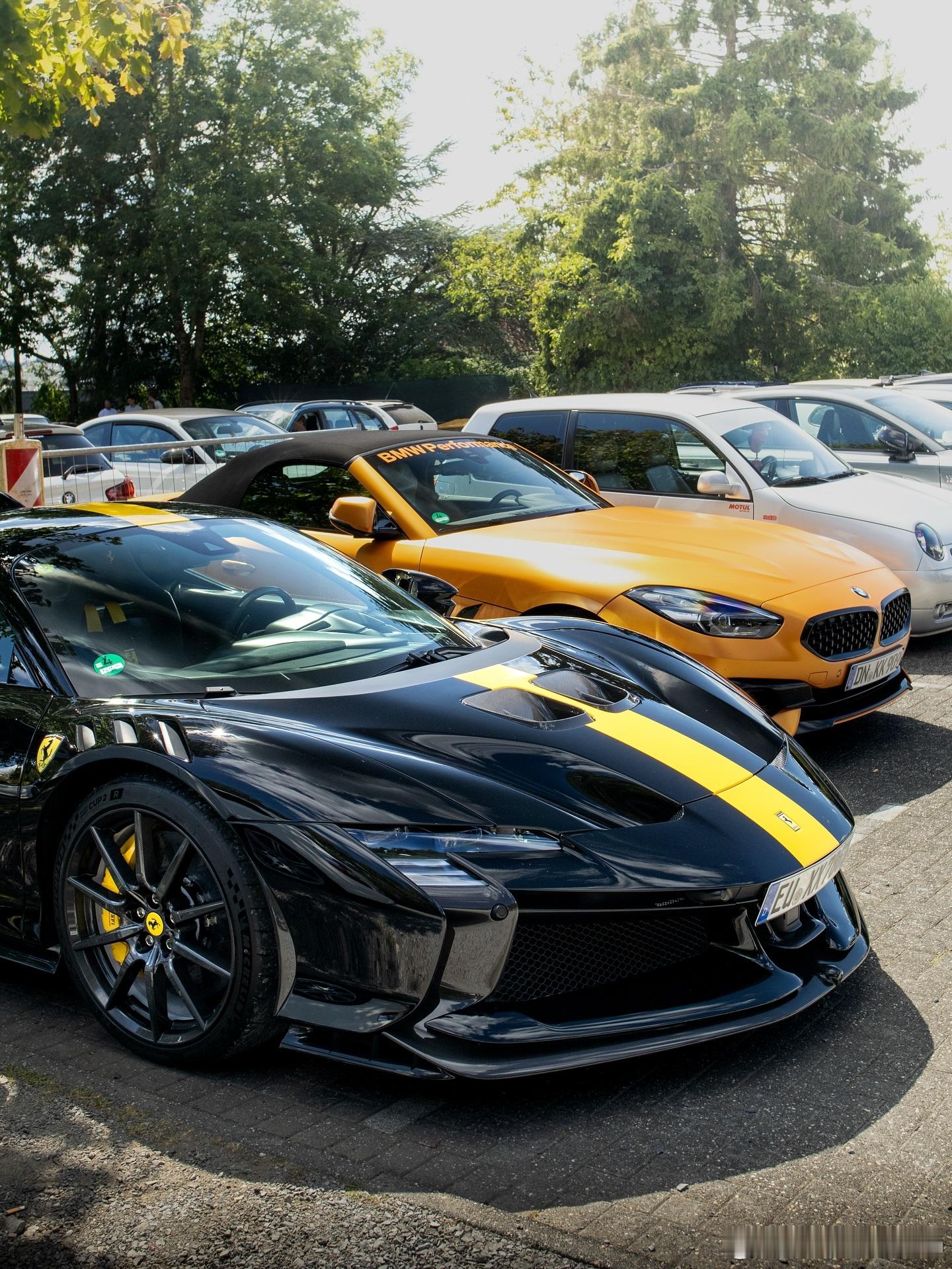 外观配色为Nero DS,搭配Giallo Modena长赛车拉花,外观方面还选择了碳纤维轮毂,此外,两侧车门下方添加了以车身颜色为主体,Giallo Modena为描边的77号赛车编号。内饰方面为Nero Alcantara,搭配黄色的四点式赛车安全带,座椅头枕上绣有黄色的马标。交付于位于德国科隆的Maranello Motors GmbH。图片来自.carmedia