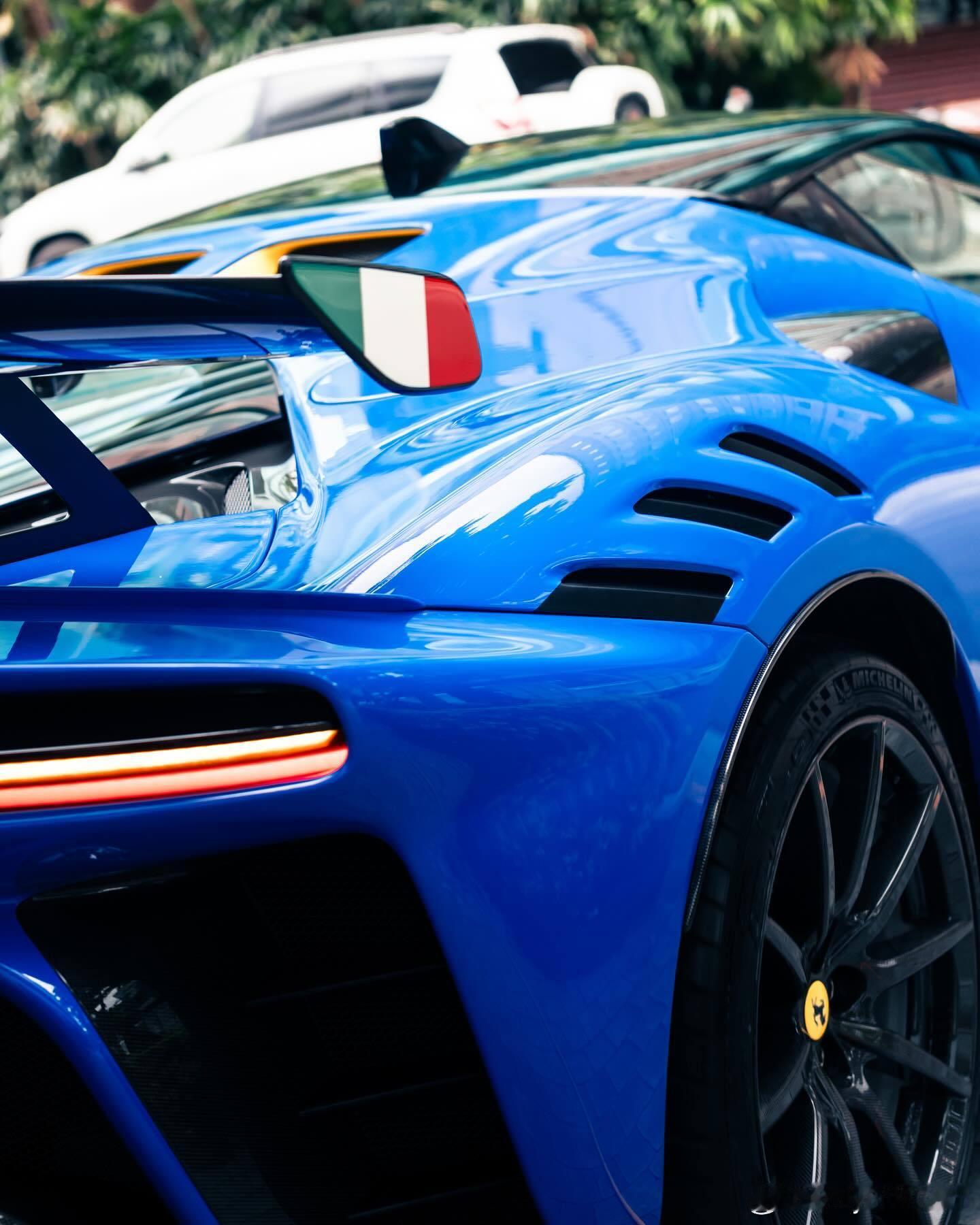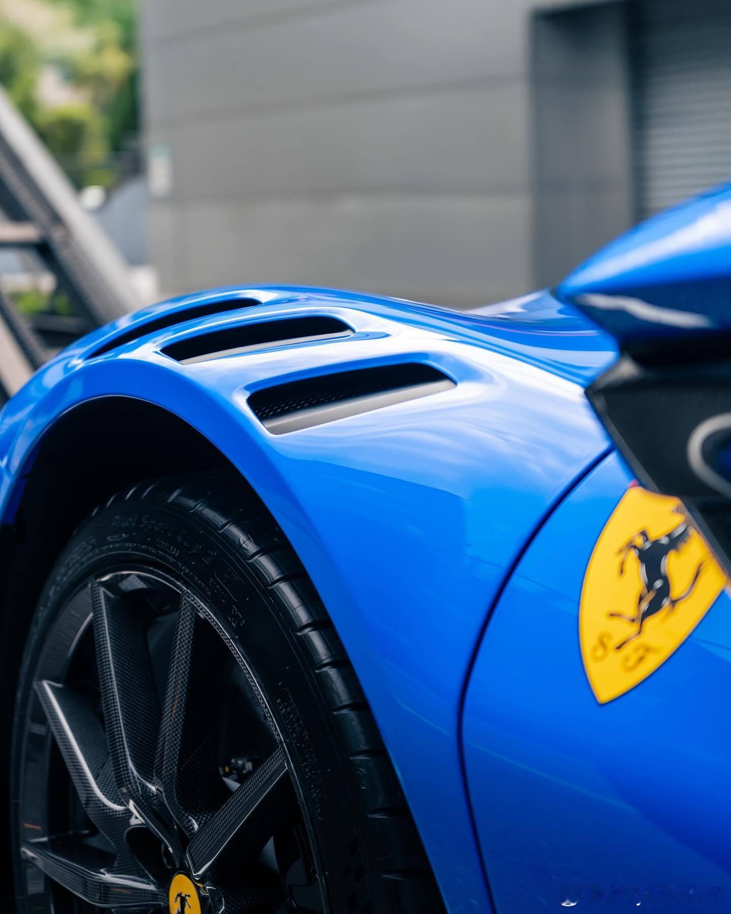 外观配色为Azzurro Dino,前后进气口使用了Giallo Fly点缀,这个宜家配色其实是SF90 XX Spider的首发配色。外观方面还选择了碳纤维轮毂和漆盾,此外尾翼的两侧还添加了意大利国旗拉花点缀。内饰方面,Nero Alcantara搭配黄色点缀,应该也是照搬了SF90 XX Spider的首发配色。交付于位于位于台湾省的Modena Motori Taiwan,这也是台湾的第一台SF90 XX。图片来自