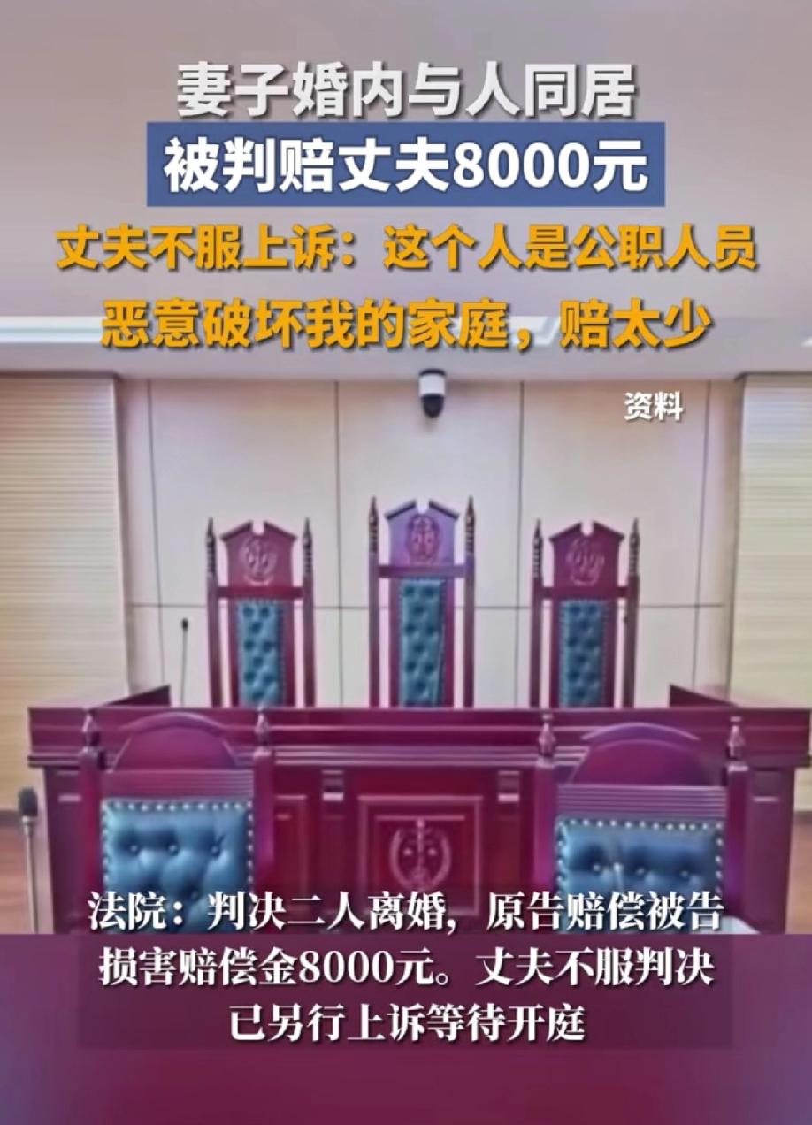 “对方是公职人员,赔偿8000元太少!”浙江温州,女子婚内出轨公职人员,被丈夫抓