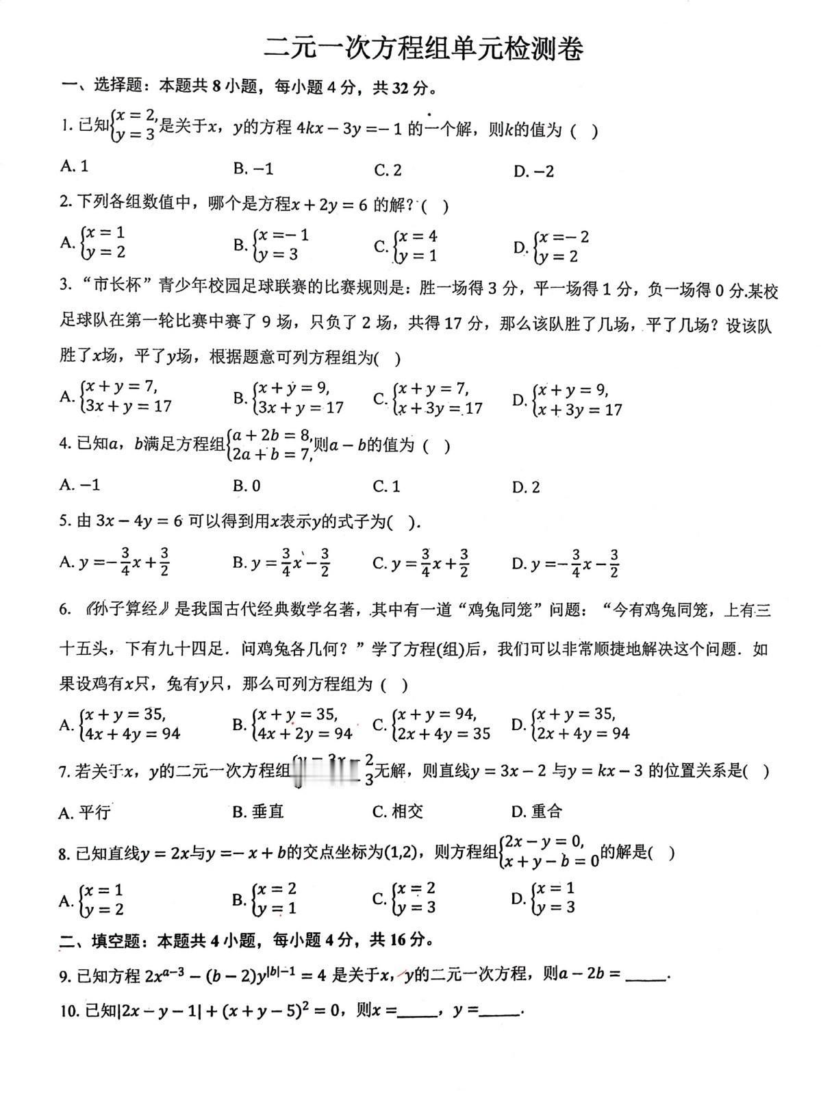 途虫初中数学精品卷分享,北师大版初中数学初八年级上册,二元一次方程组单元检测卷。这是一套基础卷,适合基础比较薄弱的学生,中等生应该可以拿到高分。 一本【数学压轴题】初中压轴题 一题多解带视频讲解 cz
