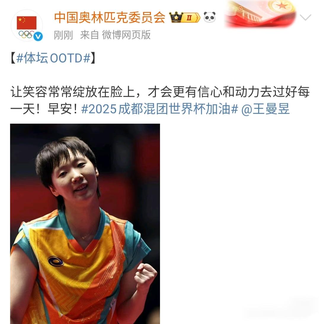 真是好高兴!当看到王曼昱这张灿烂的笑容时,真的是太治愈我了! 这张照片是全运会上黑龙江第一场对战山东队的范世琦那场球时候,鳗鱼艰难逆转了小范,赢下比赛的鳗鱼高兴的像个孩子一样,那场比赛球迷们真的好害怕,压力很大的王曼昱赢下那一刻终于释怀了!摄影师抓拍的这张图鳗鱼笑的好美! 很喜欢文中的这句话,让笑容常常绽放在脸上,才会更有信心和动力去过好每一天!鳗鱼真的很有韧性 现在正在成都混团比赛的鳗鱼每一天都在努力训练着,期待她在比赛中的精彩表现! 创作训练营2期开营啦 4