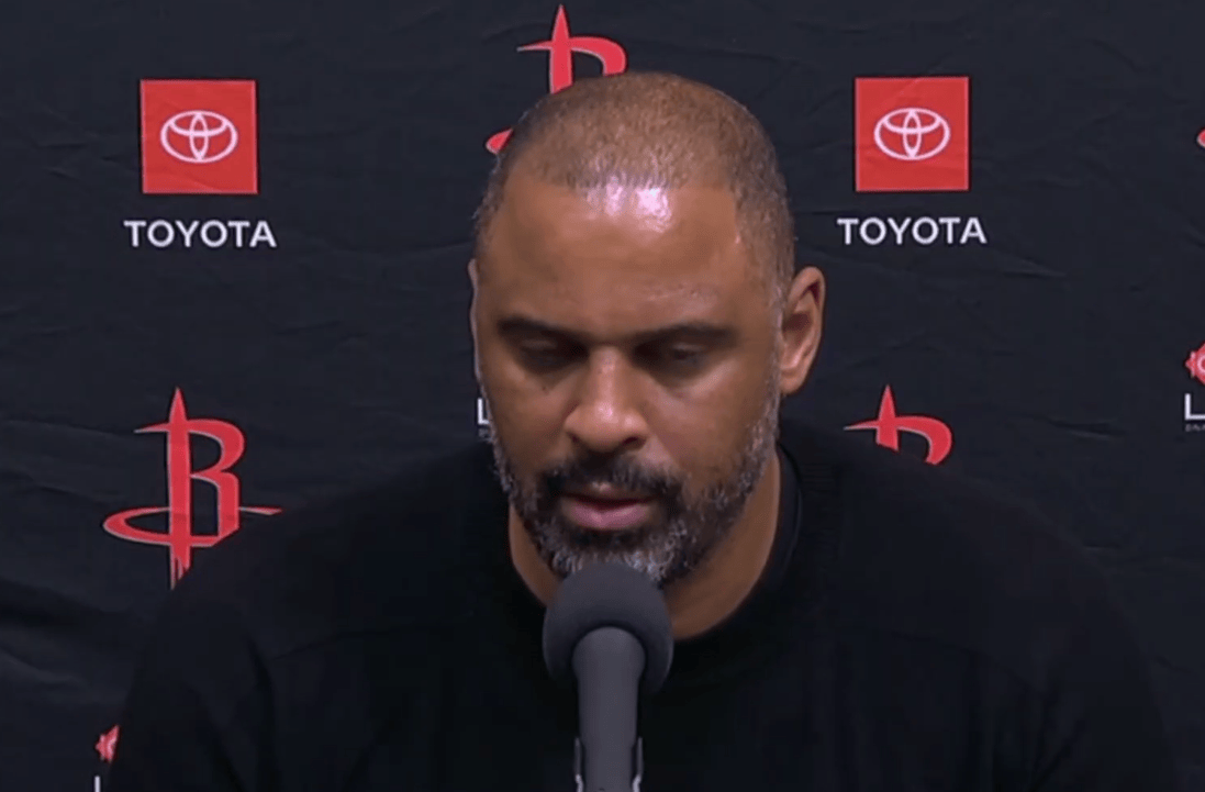 赛后,火箭主教练乌度卡接受了记者采访,记者:当你派上阿龙和杰夫-格林时,感觉他们真的带来了能量。格林具体起到了什么作用?