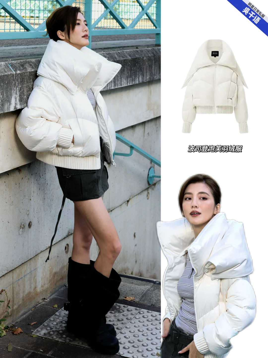 波司登今年的泡芙羽绒服简直开了挂,雎晓雯、董洁、郭晶晶、刘念、吴千语等一众女明星亲自示范:不仅时髦又保暖,而且蓬松轻盈,一点没有传统羽绒服的臃肿感和厚重感! 雎晓雯一身布鲁斯蓝连帽款,亮眼不扎眼,穿出清冷高级感;董洁用黑色短款配百褶裙与长靴,慵懒通勤感立刻有;吴千语的白色大翻领搭配针织下摆和短裙,甜酷兼具,小个子友好还不显臃肿;郭晶晶的长款羽绒服配蕾丝裙,意外和谐,贵气松弛风GET。刘念上身经典泡芙燕麦色,同色系穿搭充满冬日氛围感。 不仅女明星,男明星也纷纷上身,于适、程相、昌隆都穿了黑色泡芙,随性松弛中充满了帅气! 这波新款真的让我彻底改观——羽绒服不再只是保暖工具,而是冬日造型的加分项!