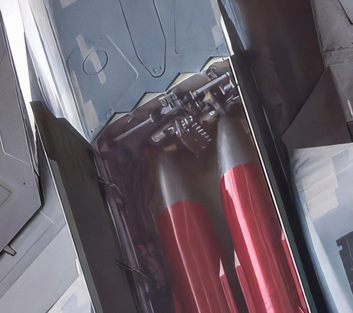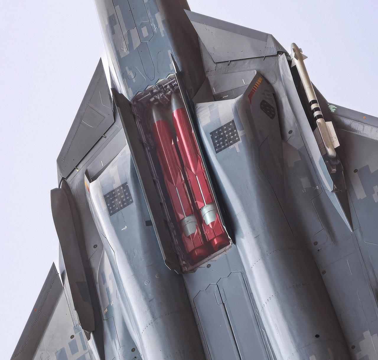 Su-57E武器舱特写。