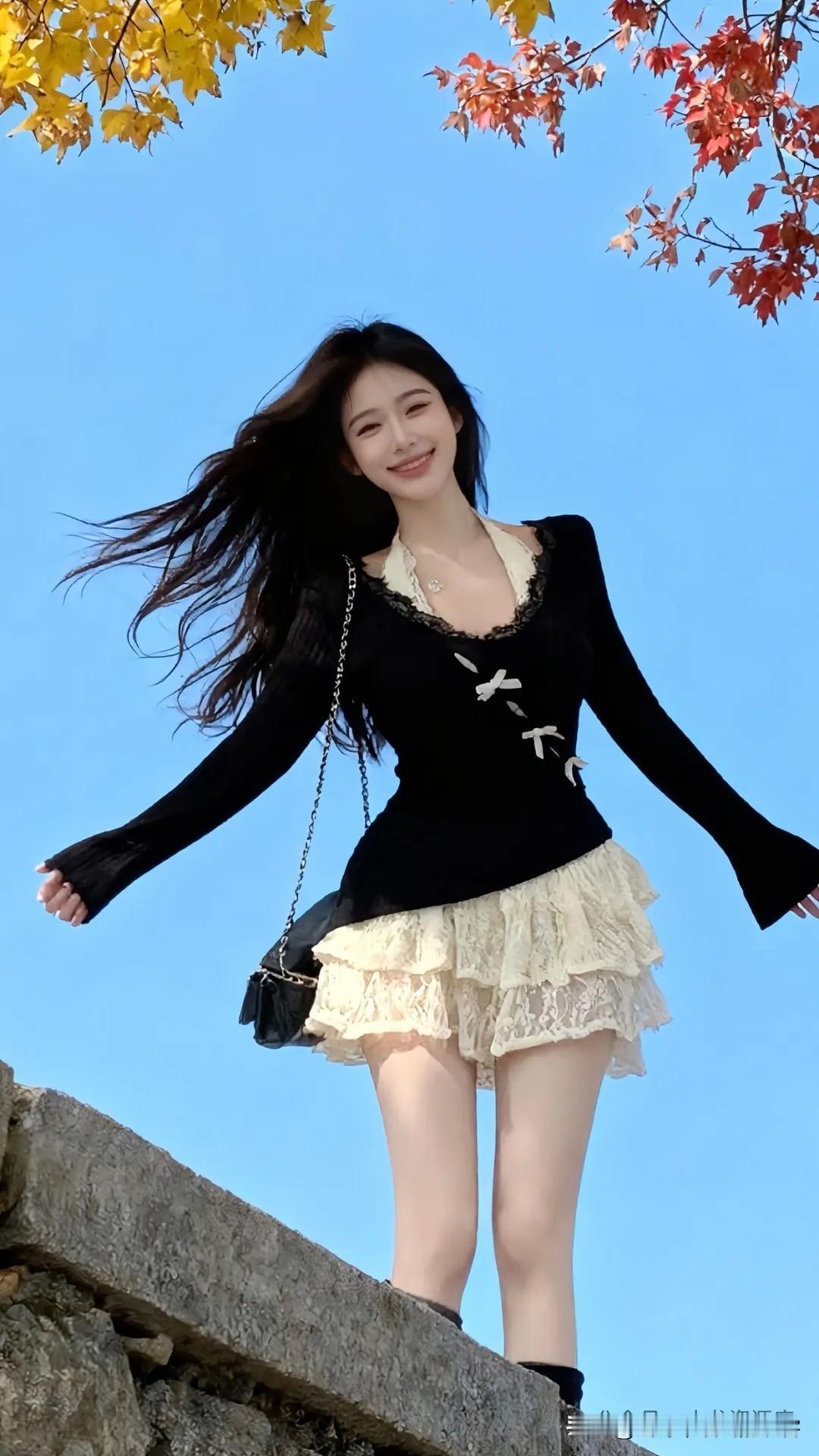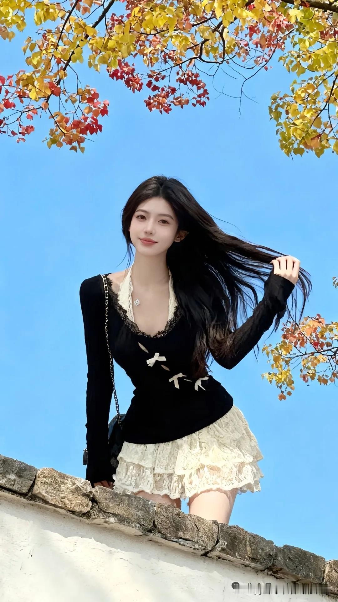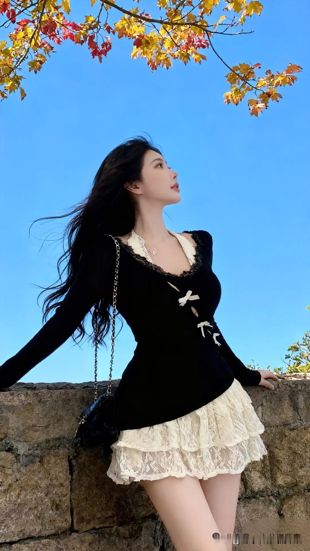 秋日暖阳下,黑裙与白裙的优雅碰撞,惊艳了时光。