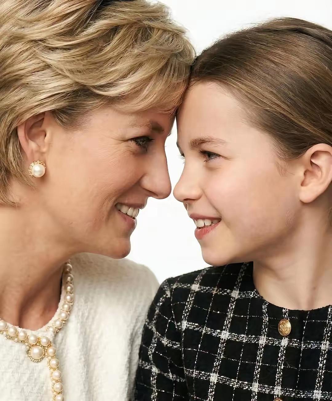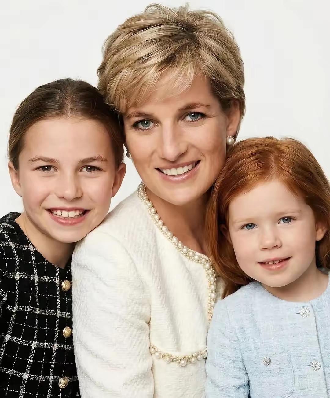 又来一组黛安娜王妃和夏洛特还有莉莉贝特的Al照片,祖孙三人对着镜头开心的笑着。威