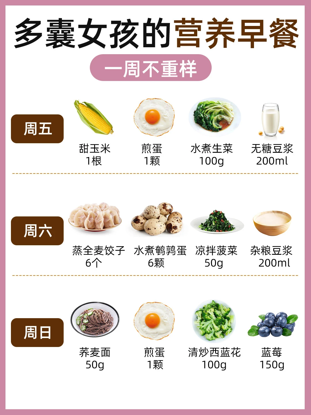 🌈亲爱的小伙伴们!今天来聊聊多囊女孩们的营养早餐!✨对于我们来说,健康的早餐真的是开启美好一天的钥匙哦!我来分享一周超级简单又营养的早餐,让你轻松美丽!💖