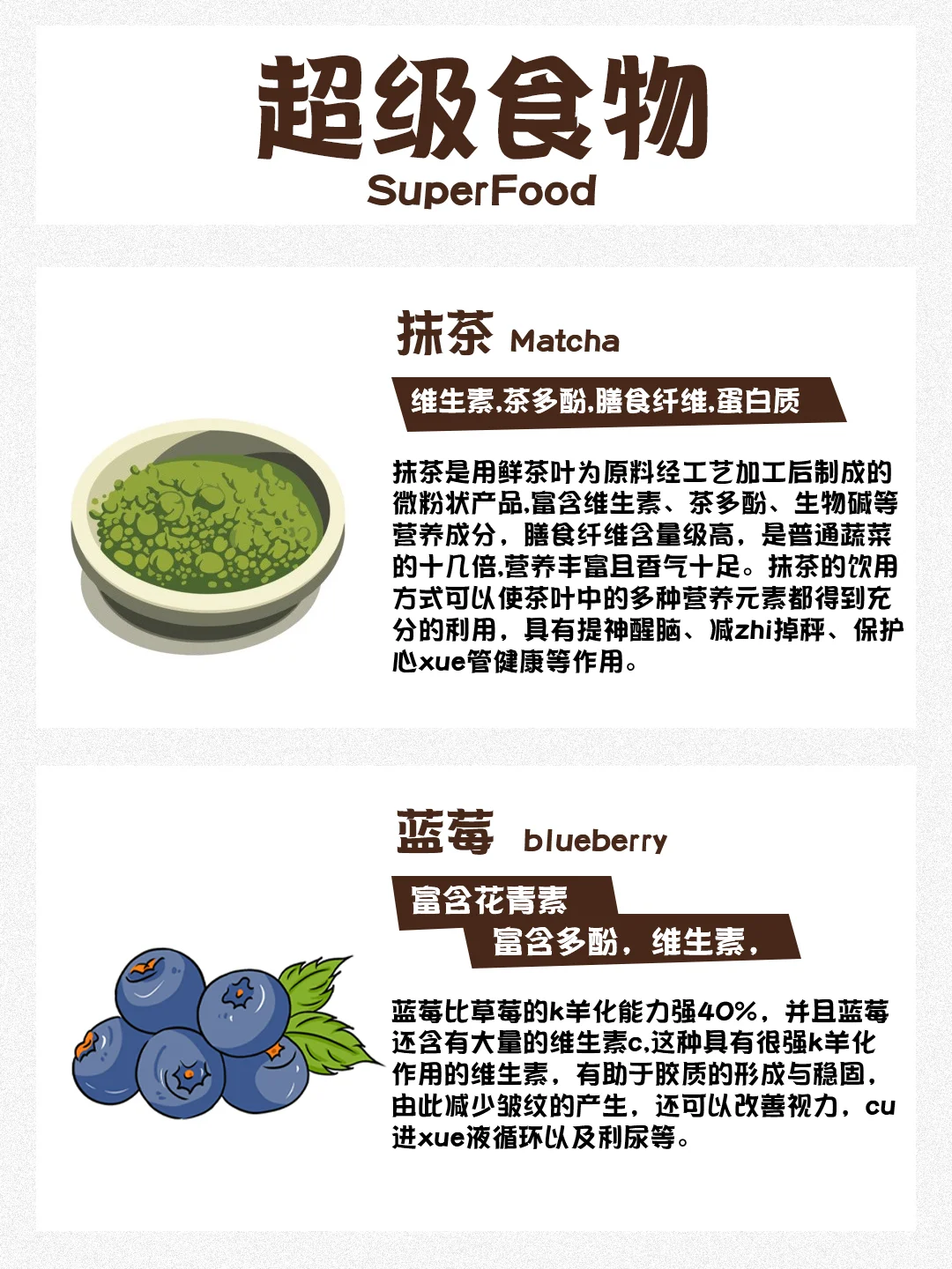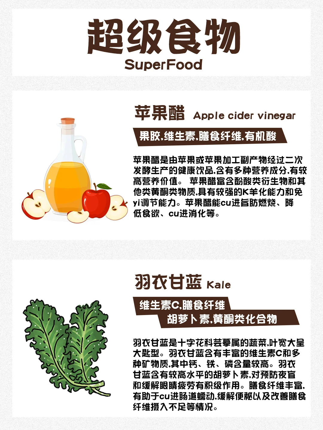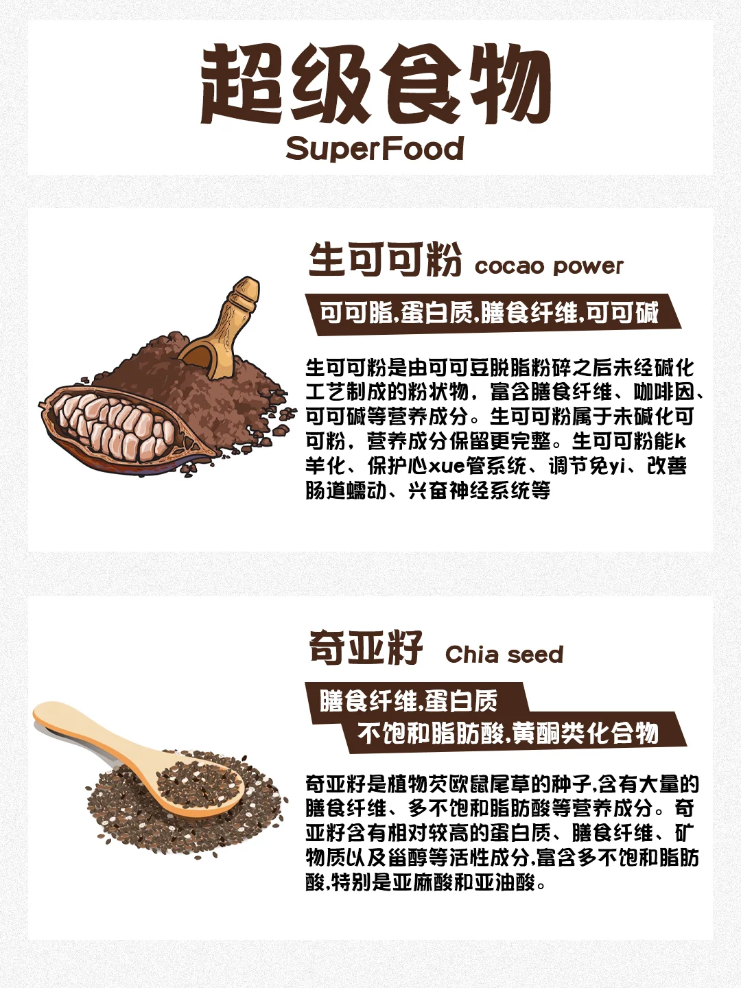 炎炎夏日到了,还有没开始减脂的姐妹吗 我们人体并不单纯是热量的加减 食物的选择才是关键! 下面几种超级食物,轻松帮助大家恢复好状态 🍫生可可粉 ⚫️奇亚籽 🍎苹果醋 🥬羽衣甘蓝 🥑牛油果 🫘鹰嘴豆 🍵抹茶 🫐蓝莓