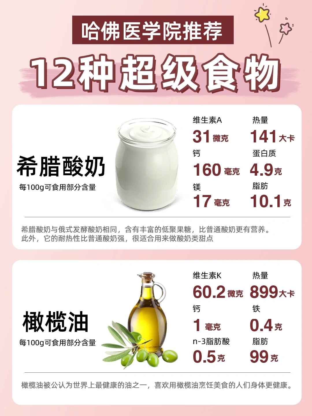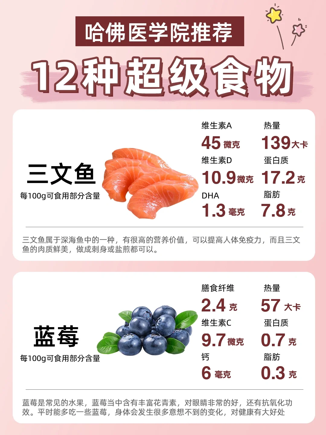 📝给大家总结了12种哈佛医学院推荐的超级食物,都是我们日常生活中所能购买到的,有没有你平时爱吃的食物呢❓快快把它们加入你的食谱中吧❗