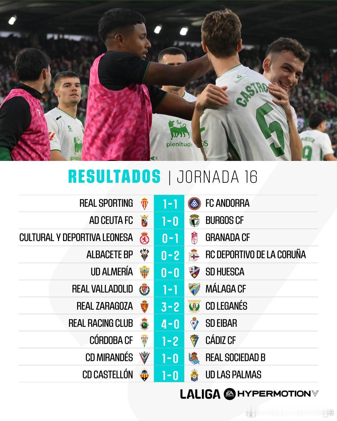 【战报/西乙】联赛16轮战报,这轮值得说的场次基本没有,只发结果了。本轮战罢埃瓦尔、莱加内斯有潜在换帅可能性
