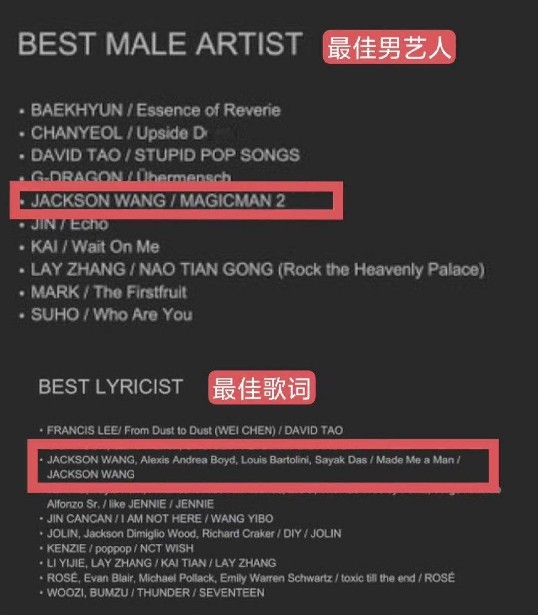 王嘉尔亚洲流行音乐大奖六项提名王嘉尔亚洲流行音乐大奖APMA2025获得六项提名:年度最佳专辑、年度最佳合作曲、最佳MV、最佳男艺人、最佳歌词、最佳制作人