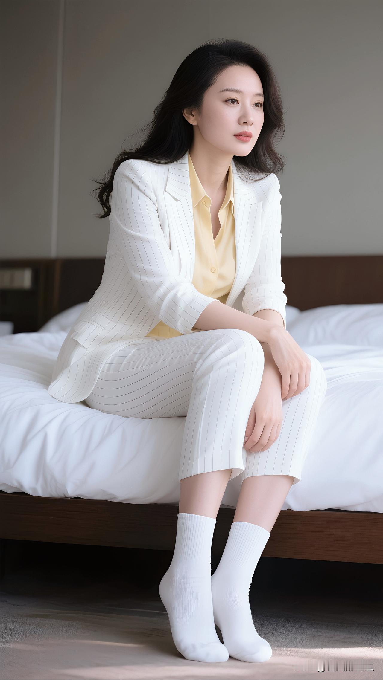 优雅职场风,白西装搭配黄衬衫,尽显干练气质!💼👠