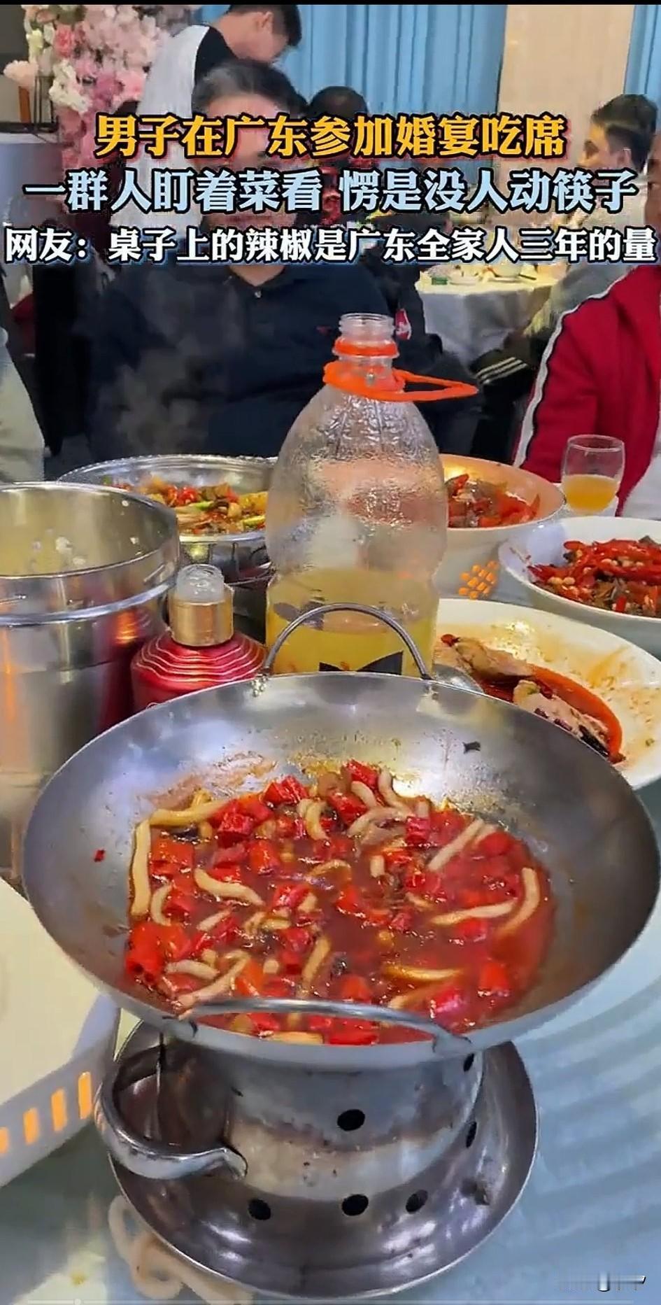 男子在广东参加婚姻, 看着眼前的菜肴愣是没有食欲, 不起不喜欢吃, 而是辣椒太多