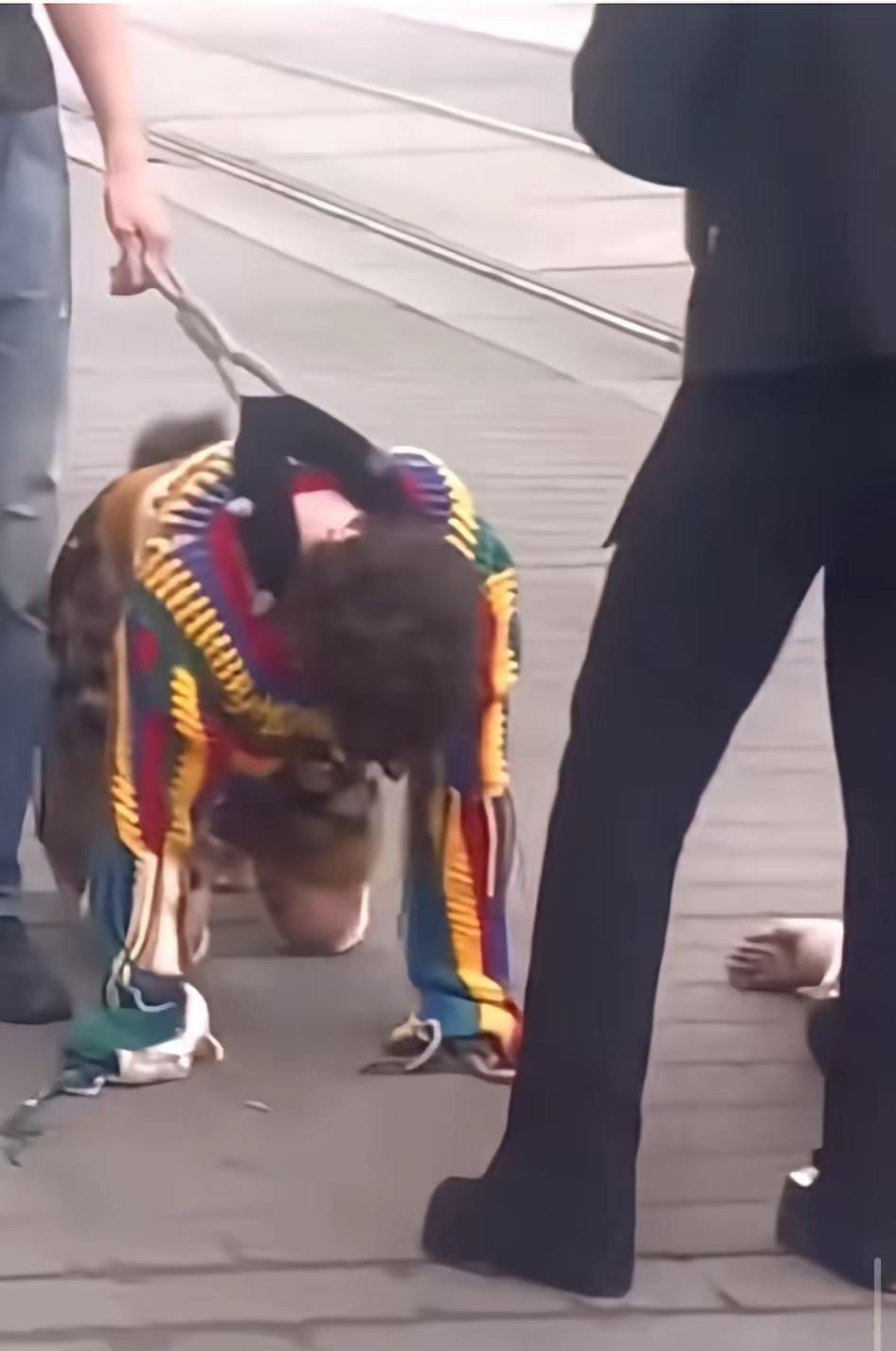 欧洲这波“犬类自我认同”潮流,也太抽象迷惑了。有人戴着项圈、拴着绳,四肢着地学狗