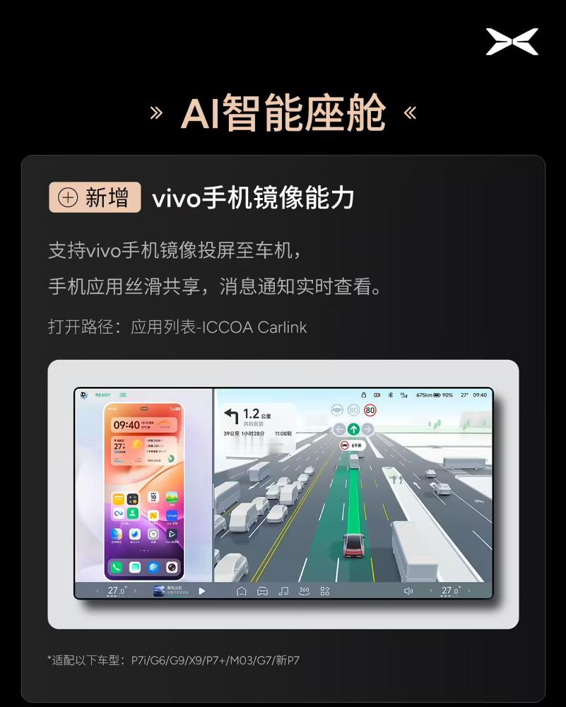 小鹏AI天玑XOS 5.8.5系统版推送新增车位到车位焕新版、vivo 手机镜像等功能