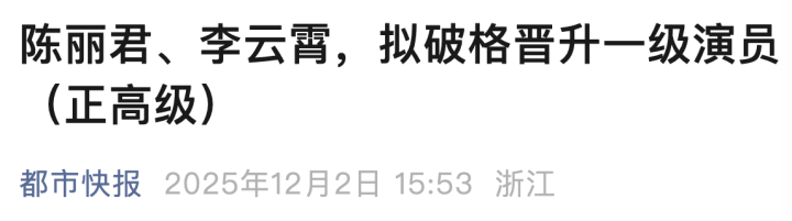 近日,2025年度浙江省文化广电和旅游厅艺术系列高级(艺术一级)专业技术职务任职资格评审计划评前公示发布。名单一出,人气越剧演员陈丽君和李云霄立刻冲上热搜,引发热议。