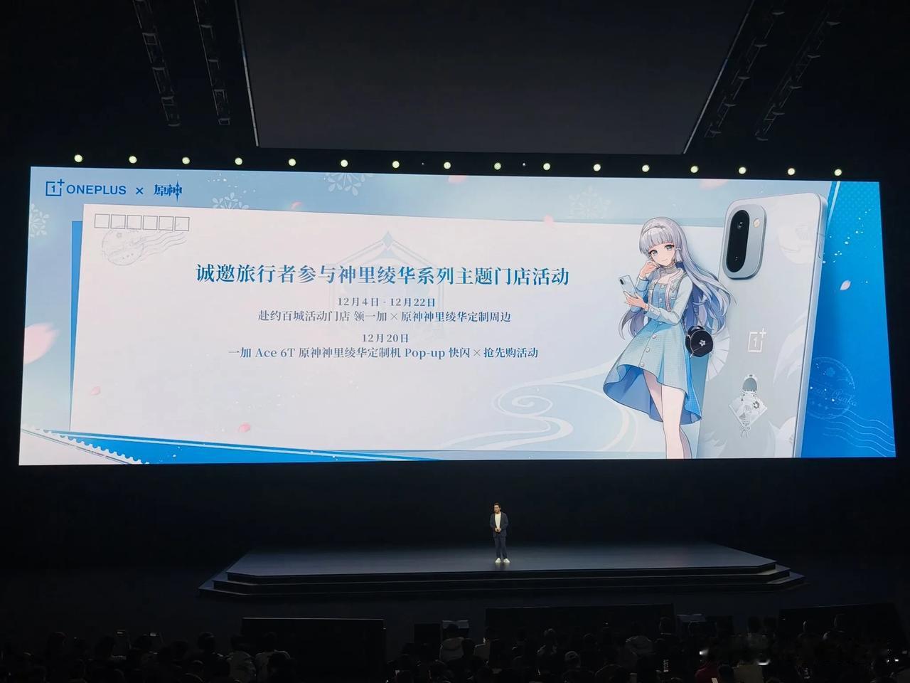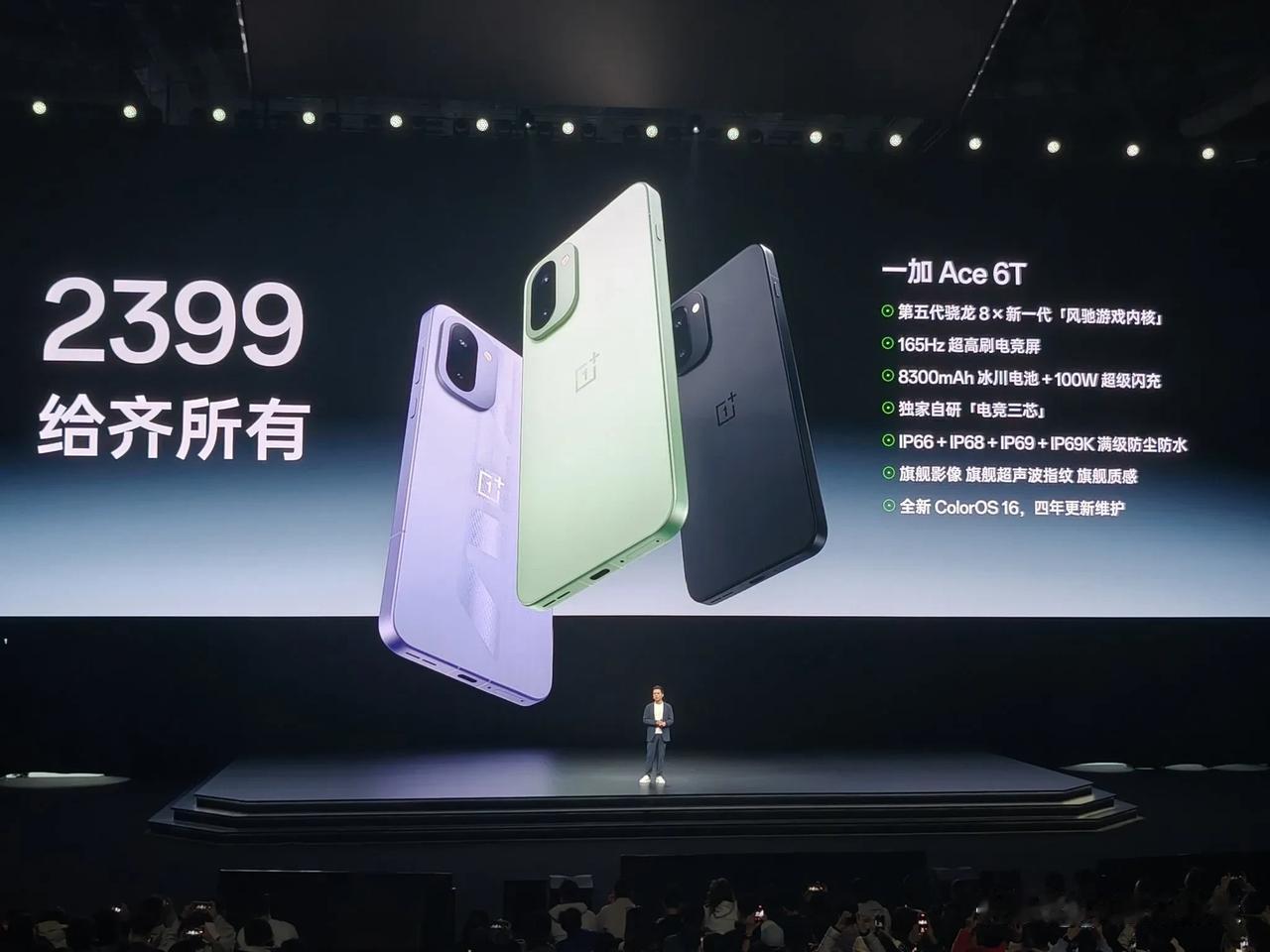 一加Ace 6T价格公布:2399元起! 12+256GB:2399元 16+256GB:2699元 12+512GB:2899元 16+512GB:3199元 16GB+1TB:3699元 第五代骁龙8 x 新一代风驰游戏内核 165Hz超高刷电竞屏 8300mAh冰川电池+100W超级闪充 独家自研电竞三芯 IP66/IP68/IP69/IP69K满级防尘防水 超光影旗舰影像、旗舰超声波指纹及旗舰质感 全新ColorOS 16全面流畅,AI更懂你 一加 Ace 6T原神神里绫华定制机,16GB+512TB:3699元