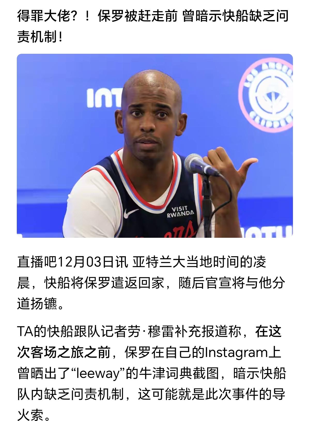 一生偏执的保罗终究还是要为自己的偏执买单 快船沦落到如此地步出乎所有人的意料, 而保罗被裁更是让人大跌眼镜。 回顾保罗的职业生涯,所取得的成就毋庸置疑,某些方面甚至可以用伟大形容。 以保罗的身体条件如果不是偏执肯定不会达到现在的高度。 但是,当把总冠军作为第一目标时,仅有偏执可是远远不够的。 换而言之,当你以自己的标准去要求别人时,你就得拿出让人折服的个人能力,而不是仅仅有个态度就可以的。 就像偏执的代名词科比一样,当队友不行时,第一要做的是把自己练到顶级。 很明显保罗终其一生都不可能有科比的得分能力,也就不太可能得到队友的完全信服。 这种事实如果认不清, 当初越倔强后期受到的反噬就越大。 就比如,当保罗与哈登组成大杀四方灯泡组合时,如果能把自己的定位做好,能更好的与队友相处,甚至能适当的降薪引来更好的轮转球员,说不定就此成就大业。 如果说这一次失利是运气不好,毕竟宇宙勇过于强悍。 于是作为补偿,又让炮哥来到了太阳, 总决赛2:0领先,连输四场被斩落马下。很多人把那支太阳的失利归结于后四场换了霍勒迪防保罗,我觉得有点牵强。 因为以那支太阳展现出的执行力是极其强悍的,而且第三场第四次是有机会赢球的,仅仅是一组对位就能连输四场,这未免有点儿戏。 FMVP之争有可能不是空穴来风。 一次两次都是运气不好不要紧, 上天又给了保罗第三次机会, 当杜兰特又来到太阳之后,太阳可是冠军第一种子选手。奈何种种原因又被扫地出门。 当接二连三的机会都把握不住时, 倒霉是迟早的事。 印证保罗太过自我的另一个强有力的证据就是保罗带队一群年轻小朋友时下限是有保障的。 当暮年的保罗作为球队大脑时,保罗的能力是顶级的。一方面呢能把队伍梳理的井井有条、细致入微,一方面小伙子们能听从安排、各司其职。 带弱队不弱,它的核心宗旨是,只要你听话就行。我虽然不能带你飞,但是我能带你奔跑。 但是带强队夺冠可不是这套逻辑, 你要当好大脑就得让球星跟你一条心,但是你又没有“钱压奴婢手艺压当行人”的那种绝对实力,这玩意就很难办了。 这就好比装修, 你给保罗三万块钱,他能给你装出十万的效果; 当你给保罗三十万时,他还是给你装出十万的效果。 最后还是祝福保罗去雷霆或者火箭吧, 这两支球队和保罗都颇有渊源, 而且以年轻人居多,球虽然打不动了,做个球员助理教练冲一下冠军也算是作为球员最后的体面了。